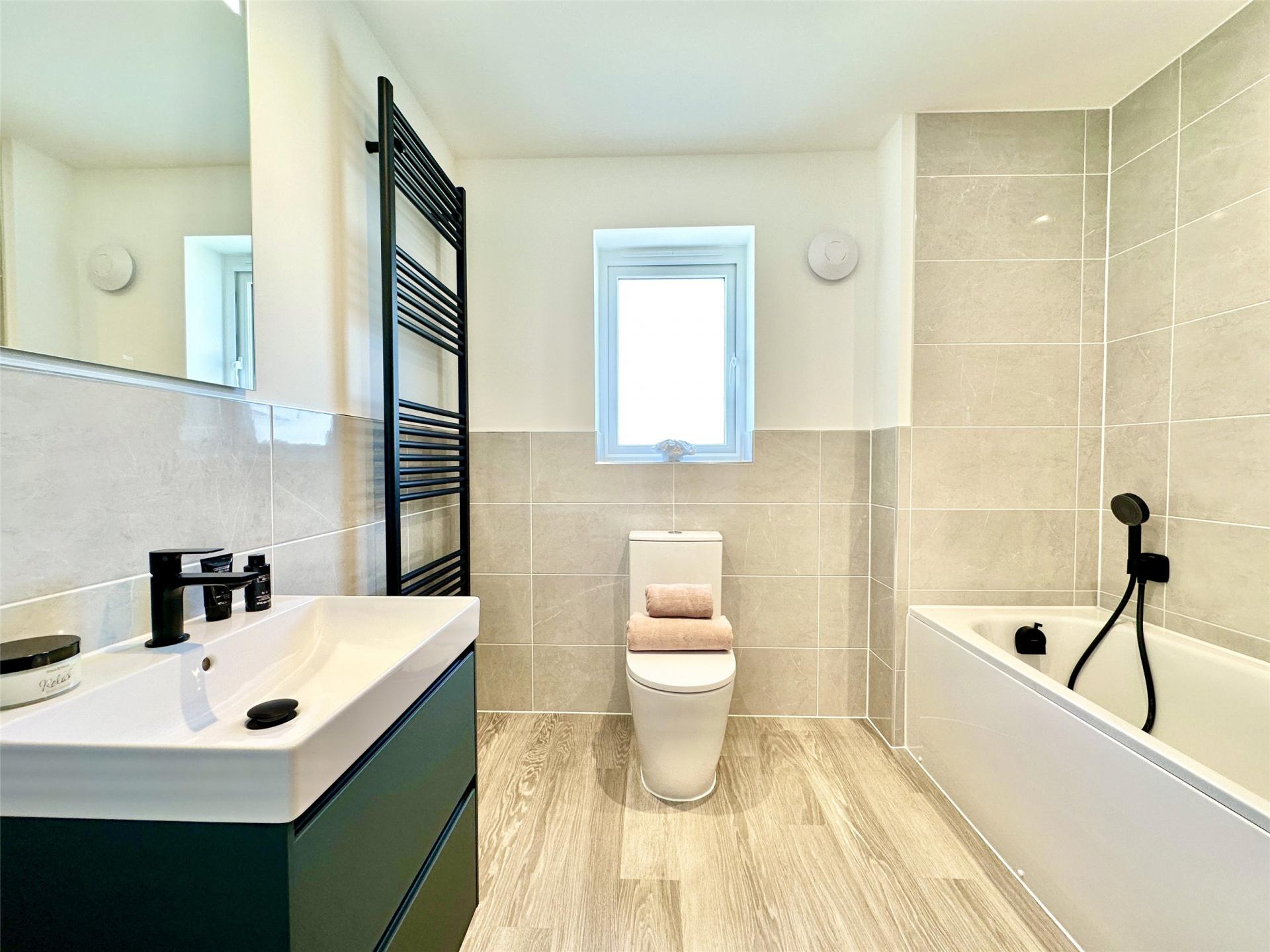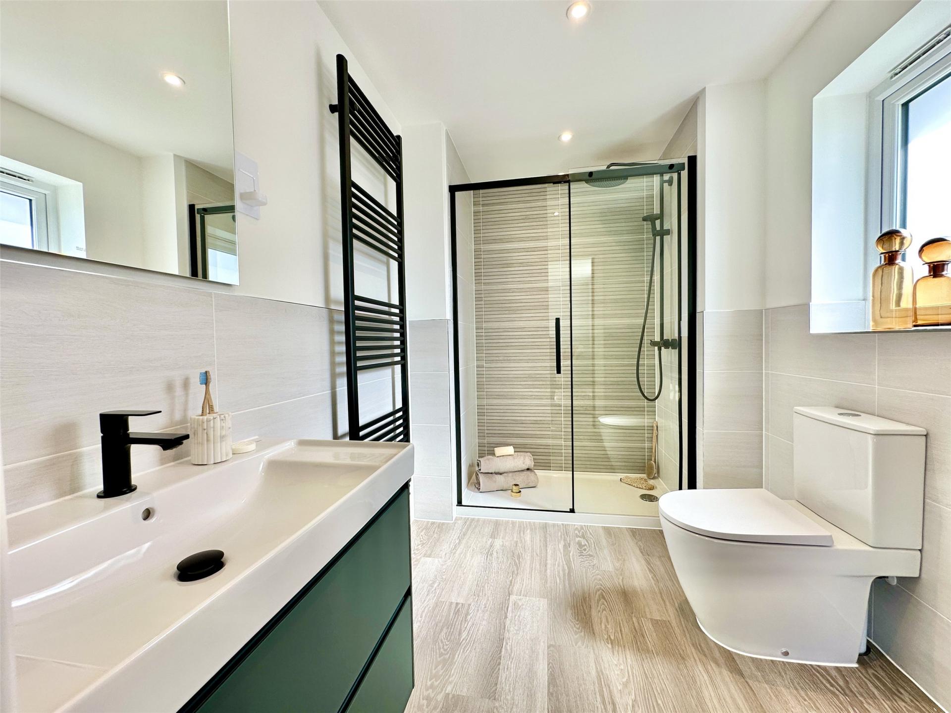 Bedroom two also enjoys its own en suite, ideal for older children or guests.