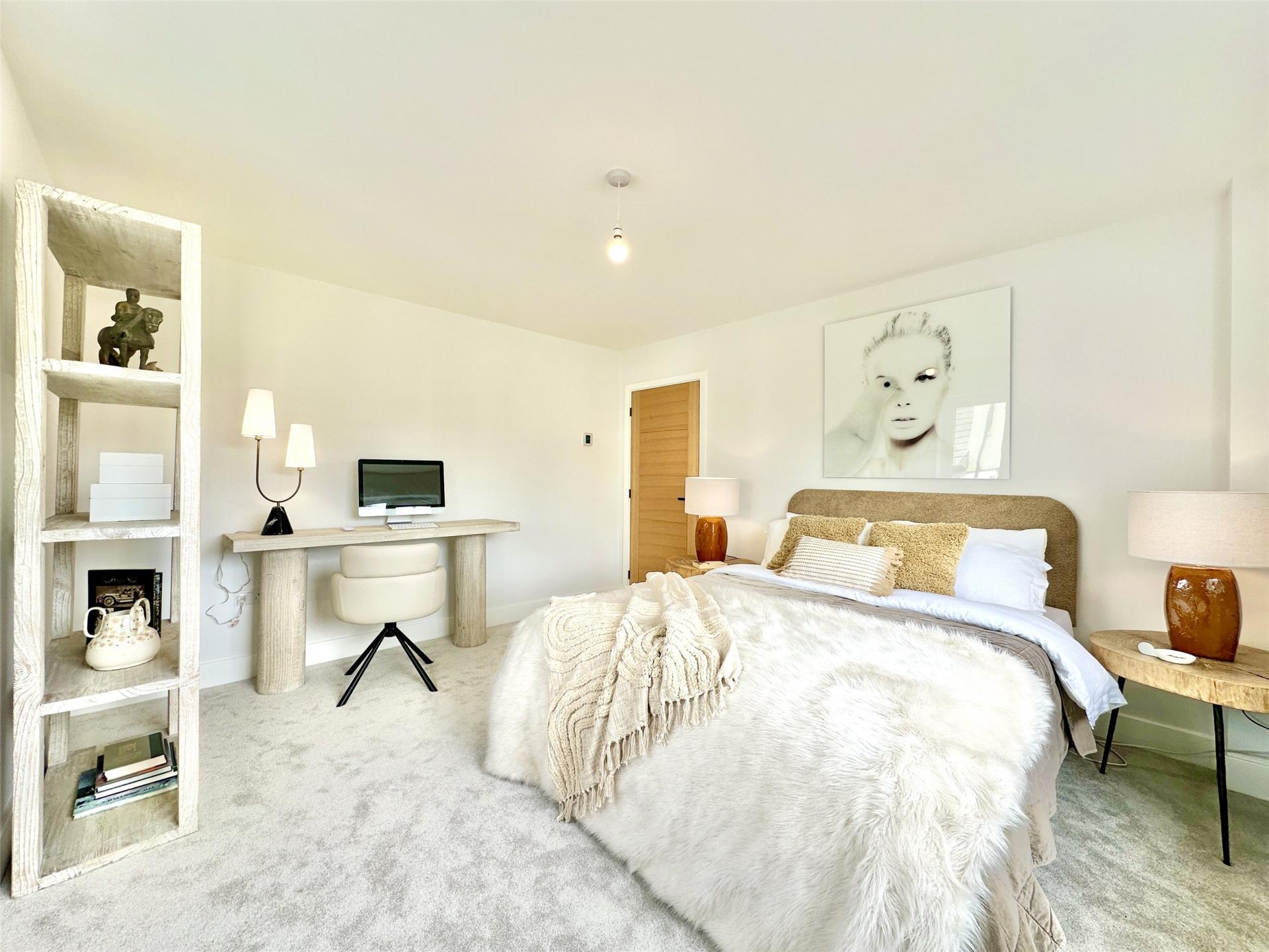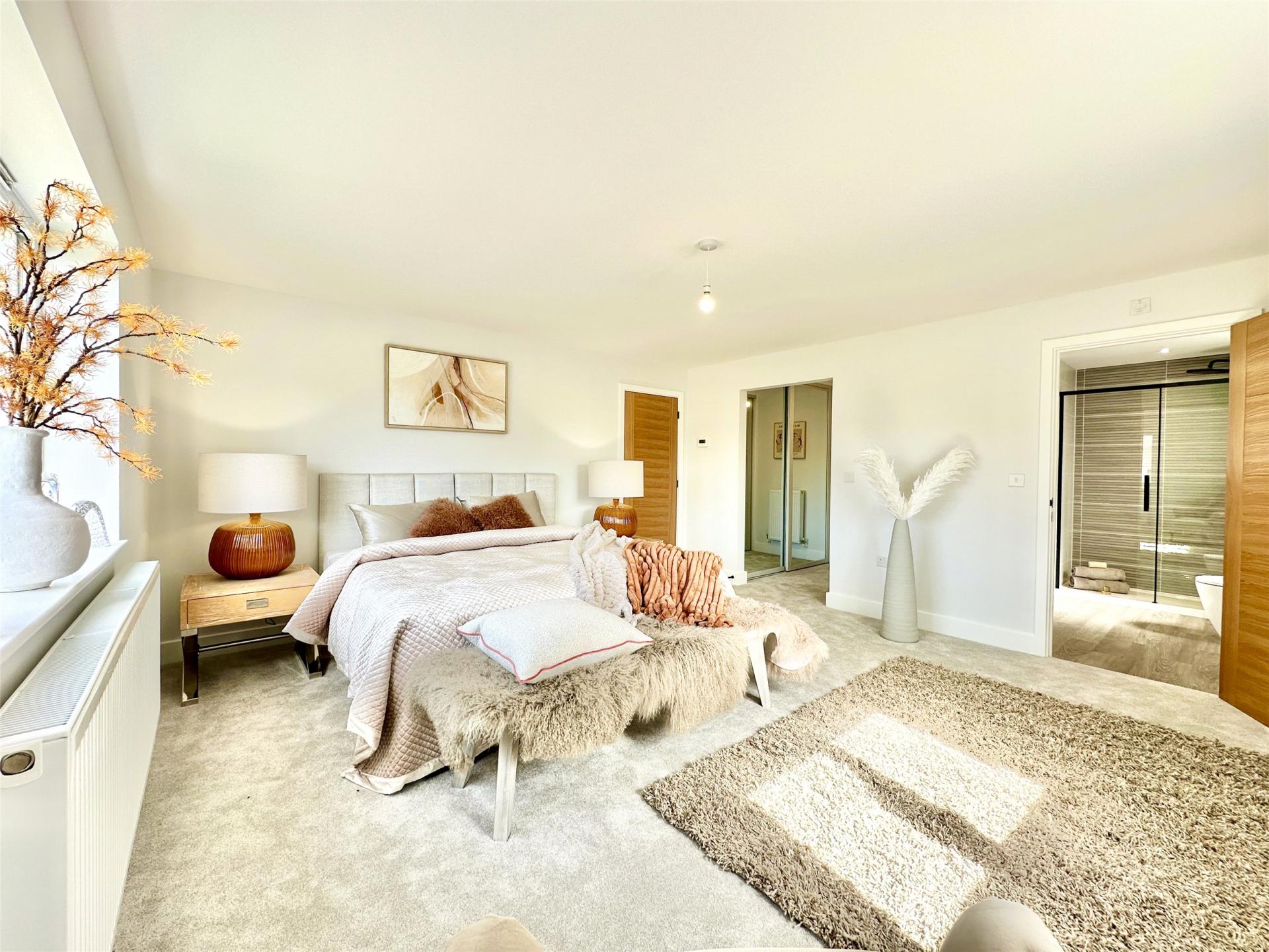 The principal bedroom is a true suite, featuring a spacious dressing room with built-in wardrobes and a well-appointed en suite shower room.