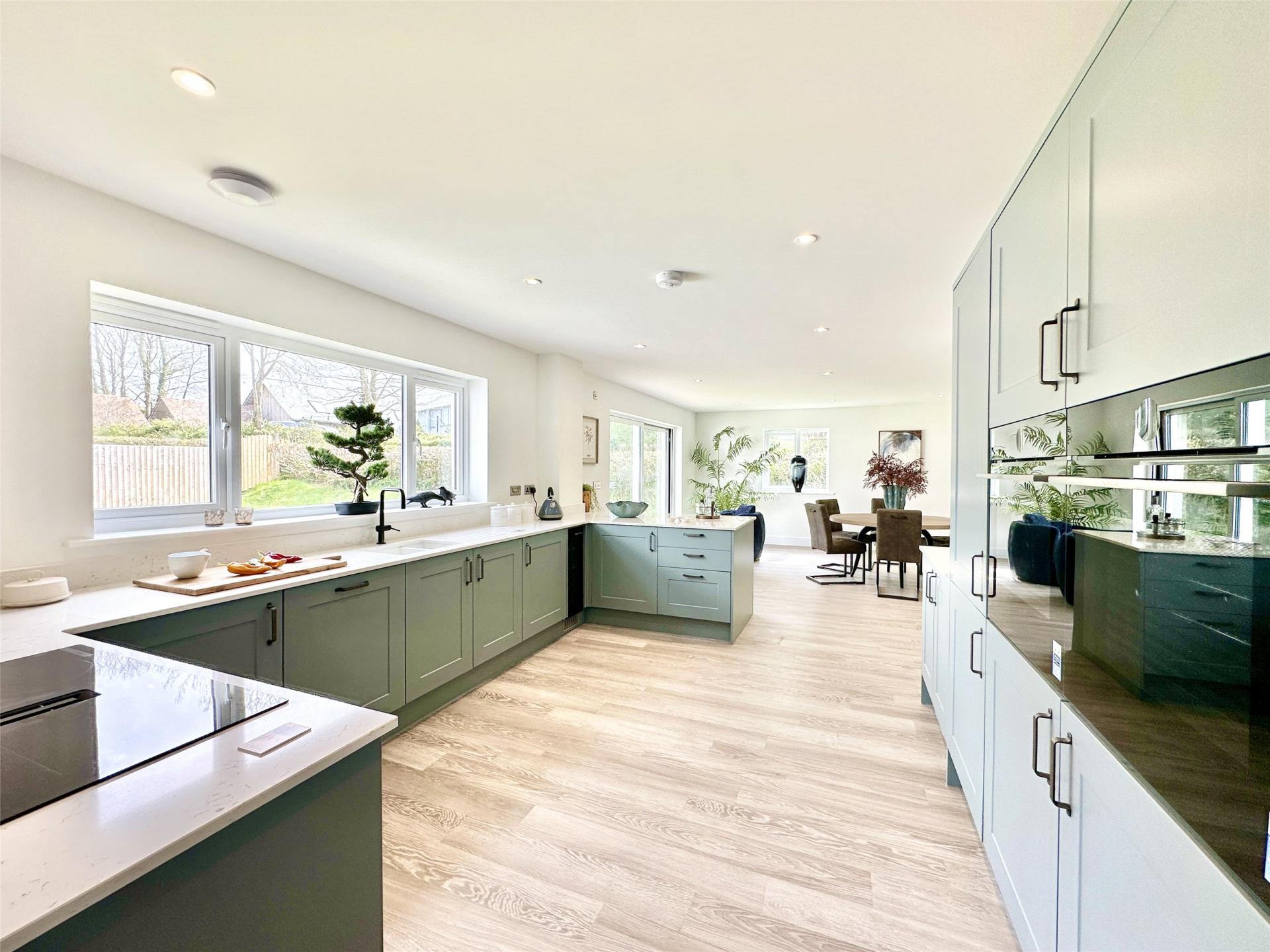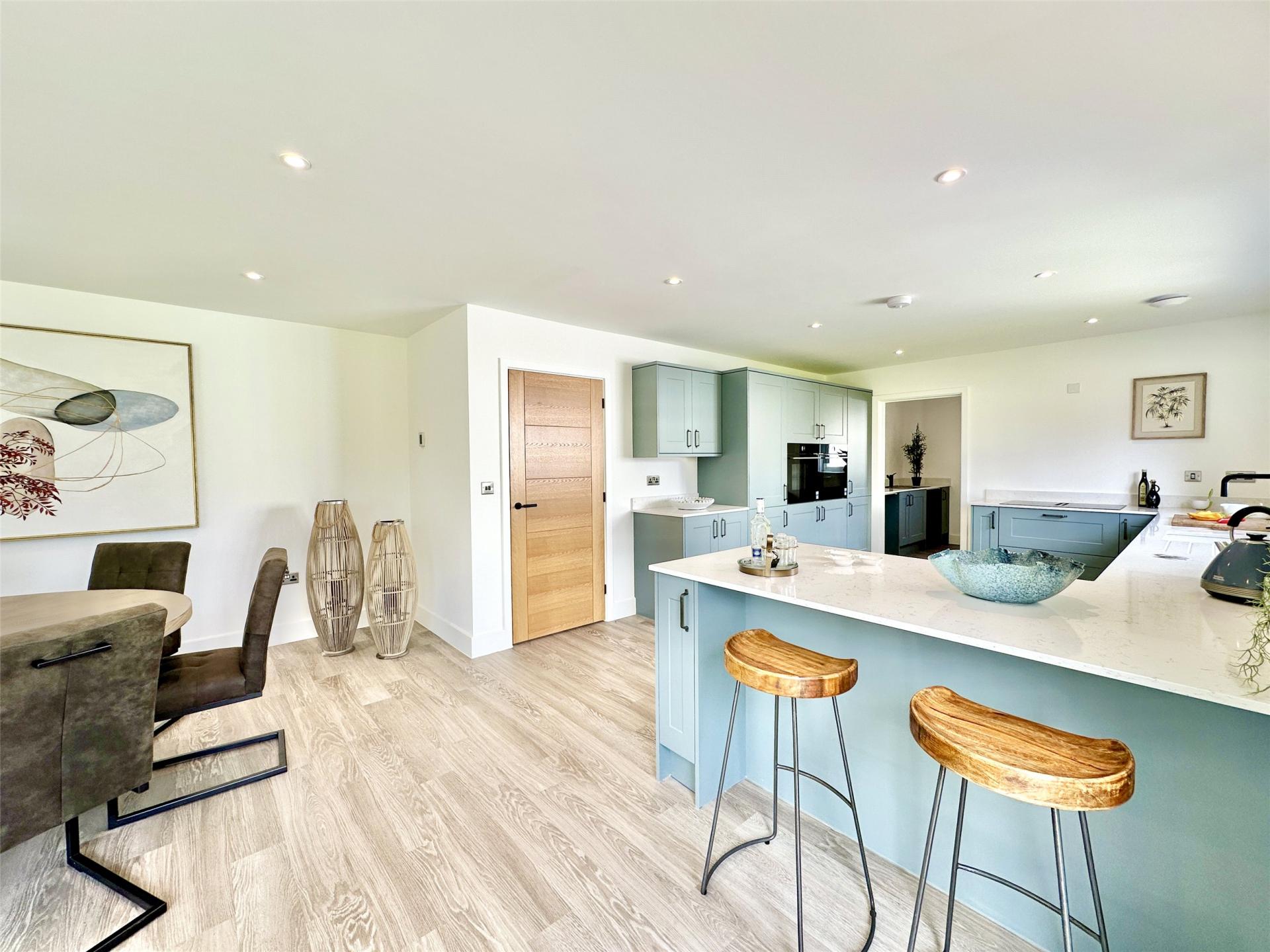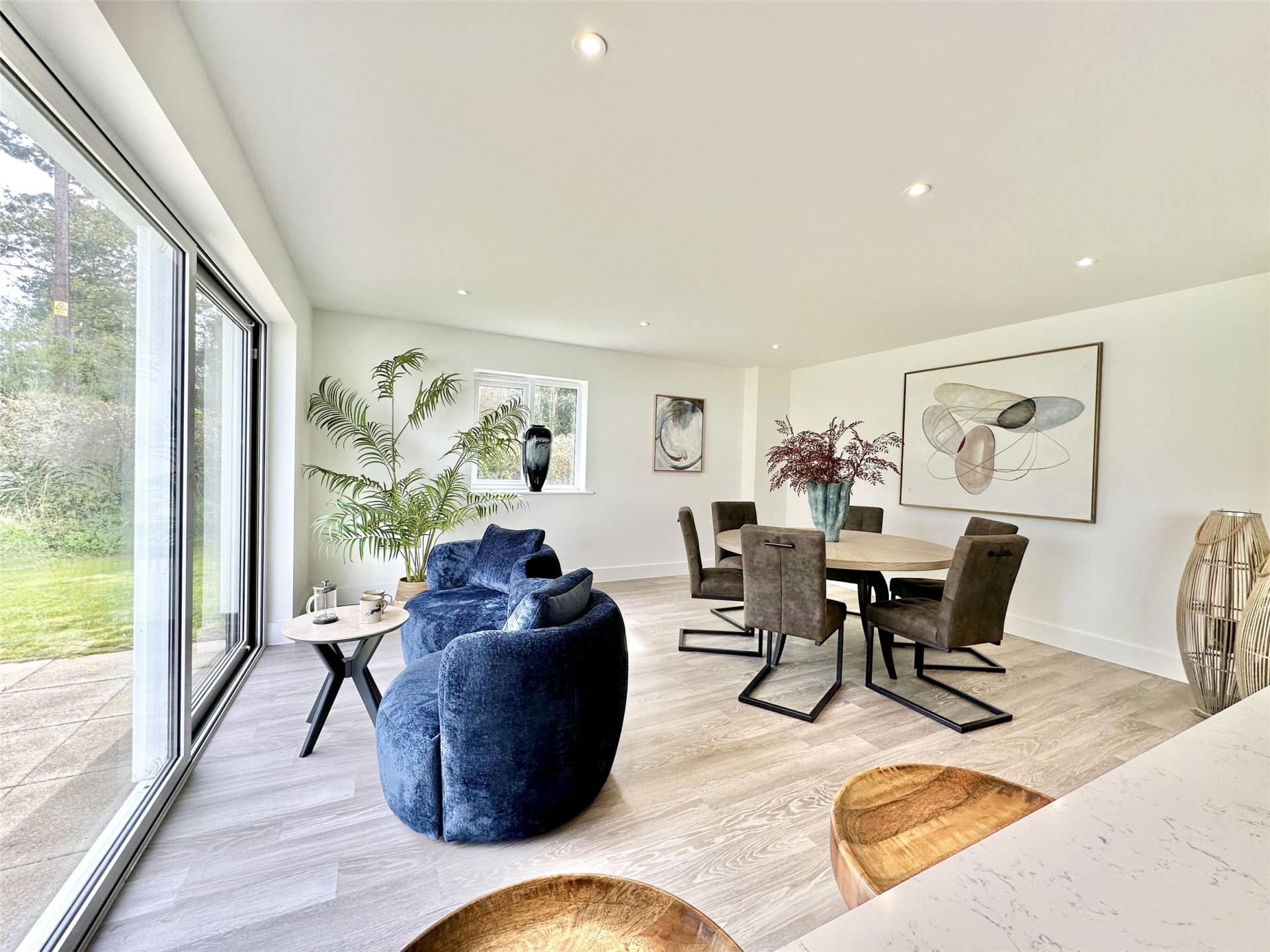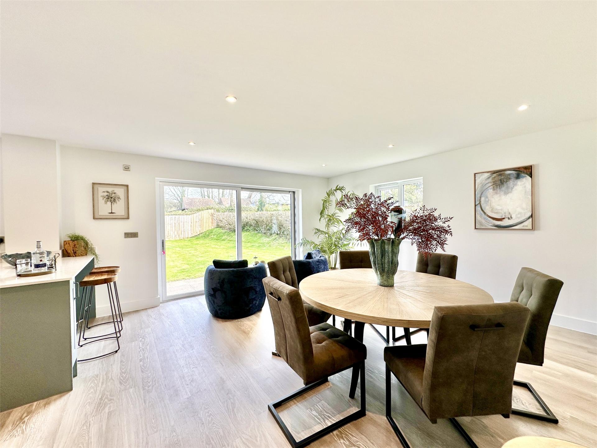 The heart of the home is the superb kitchen / dining / daytime living space a warm, sociable environment perfectly suited to modern family life. There is ample room for a large dining table, a relaxed snug or sofa area, and everyday family use, while doors open directly onto the rear garden to create a seamless connection between indoor and outdoor living. Whether hosting friends, supervising homework or enjoying summer evenings spilling out onto the terrace, this space is designed to be lived in and enjoyed.