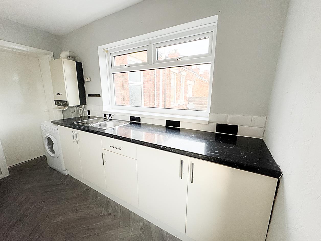Kitchen - 3.51m x 2.18m - Double glazed window, door to external staircase, fitted with range of floor units with countertops, sink unit, plumbed for washing machine