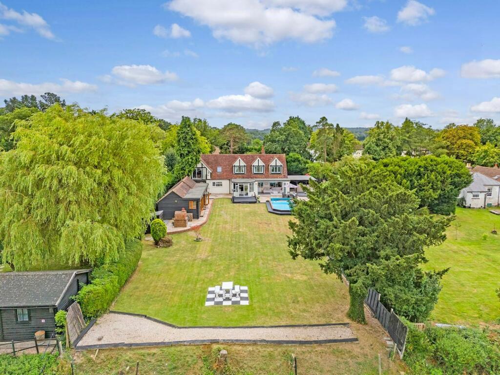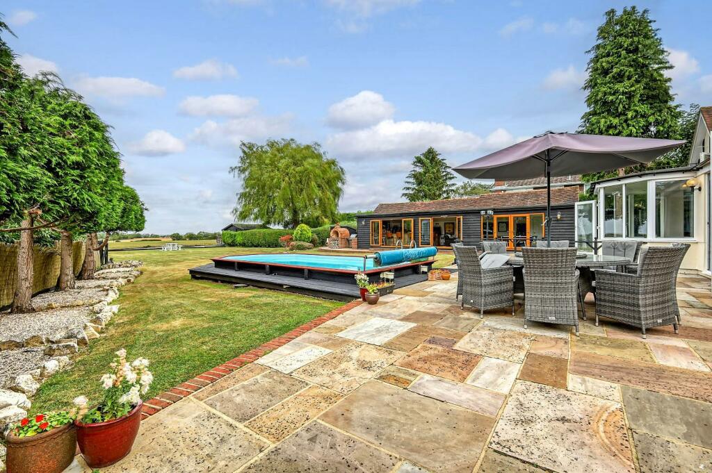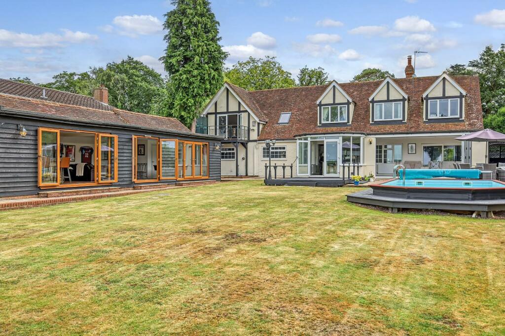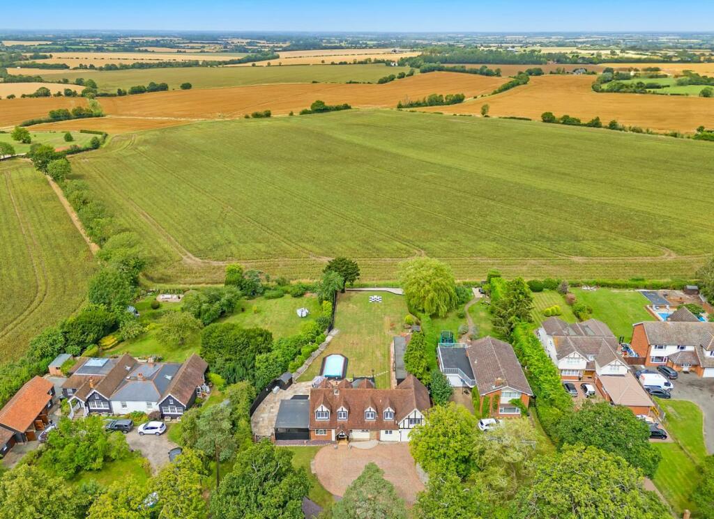 On a plot of just under ? an acre (0.48) stls and being located in the pleasant semi-rural village of Loves Green and with views over farmland to the rear is this beautiful, styled four-bedroom detached family home, offering almost 3900 sq.ft of living accommodation. Rooms dimensions are generously sized throughout, including a fabulous kitchen / breakfast / family room where you can sit and enjoy the stunning views over the rear garden and fields beyond. The property also benefits from a large cinema room 23'9 x 12'10, home office, separate lounge, plus en-suites and a dressing room to two of the bedrooms; there is a heated swimming pool and large bar/games room within the garden. Screened from the road via mature hedging, a large block paved driveway providing excellent parking options, is accessed via wrought iron, electrically operated gates. Viewers will note that property is within easy reach of both Chelmsford City and Ingatestone where there is high street shopping and mainline train services into London Liverpool Street.