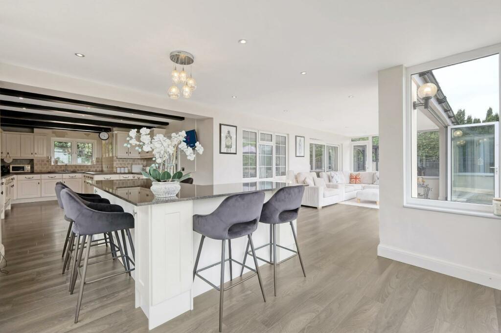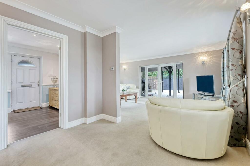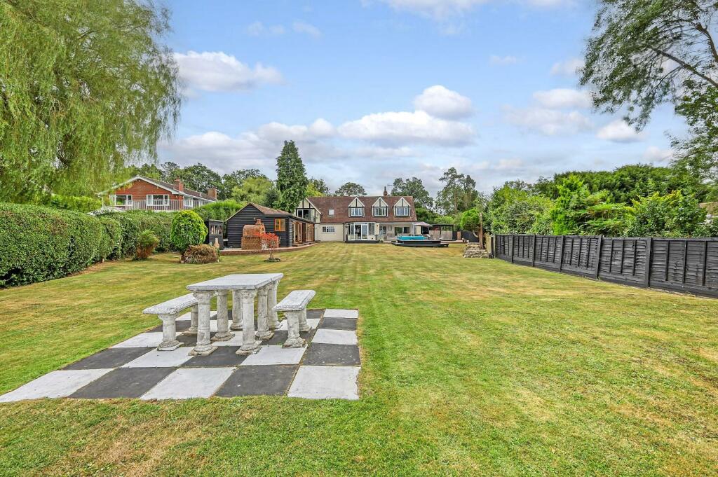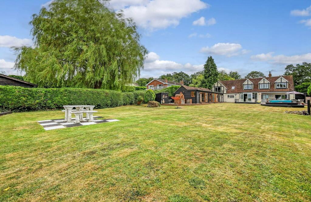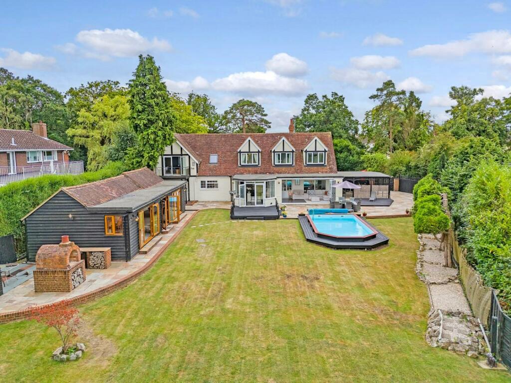 On a plot of just under ? an acre (0.48) stls and being located in the pleasant semi-rural village of Loves Green and with views over farmland to the rear is this beautiful, styled four-bedroom detached family home, offering almost 3900 sq.ft of living accommodation. Rooms dimensions are generously sized throughout, including a fabulous kitchen / breakfast / family room where you can sit and enjoy the stunning views over the rear garden and fields beyond. The property also benefits from a large cinema room 23'9 x 12'10, home office, separate lounge, plus en-suites and a dressing room to two of the bedrooms; there is a heated swimming pool and large bar/games room within the garden. Screened from the road via mature hedging, a large block paved driveway providing excellent parking options, is accessed via wrought iron, electrically operated gates. Viewers will note that property is within easy reach of both Chelmsford City and Ingatestone where there is high street shopping and mainline train services into London Liverpool Street.