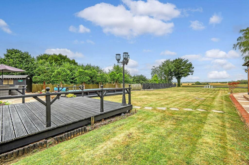 As previously mentioned, the property sits on a plot of just under ? acre with a large garden having stunning views across open farmland to the rear. An Indian Sandstone patio and raised decking to the immediate rear of the of the property lead into neat lawns where you have a heated swimming pool with retractable cover. Adjacent to the pool is an impressive games room, 45'1 in length which includes a brick-built bar area with wooden bar surface over, a separate w.c. and storage room. Great in the warmer seasons, there is also a brick-built pizza oven and BBQ area with handy covered log storage.