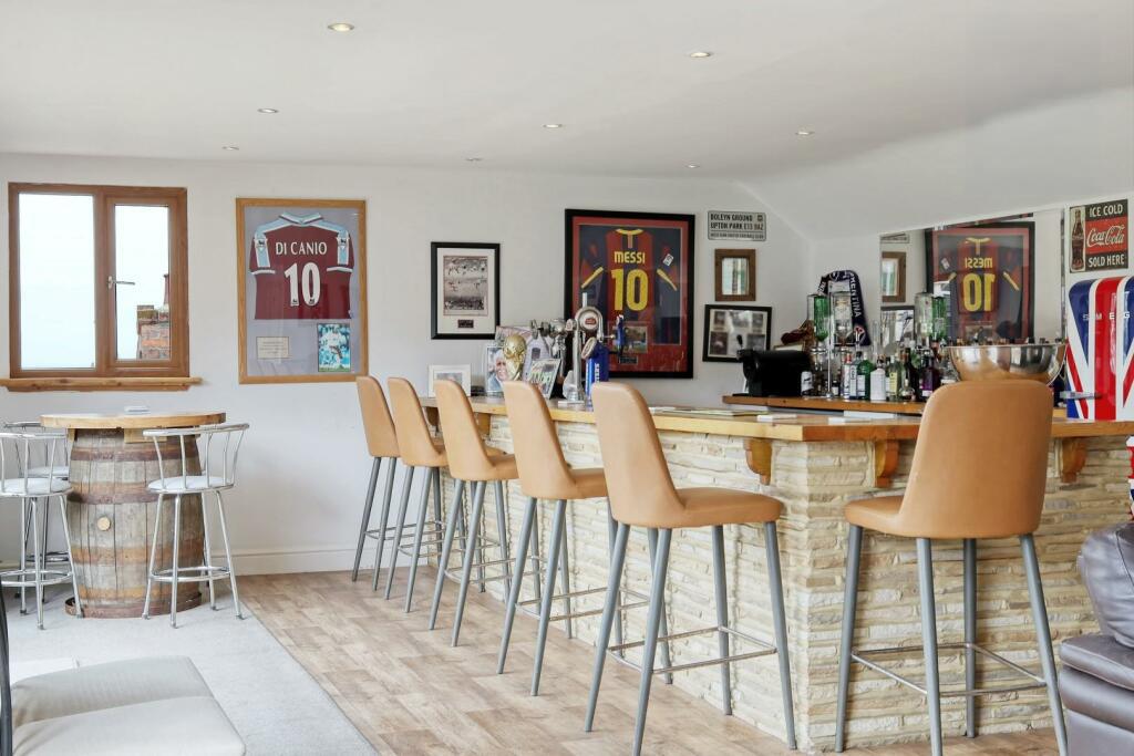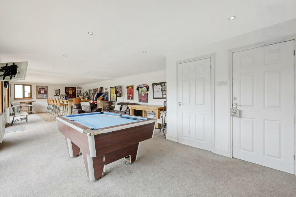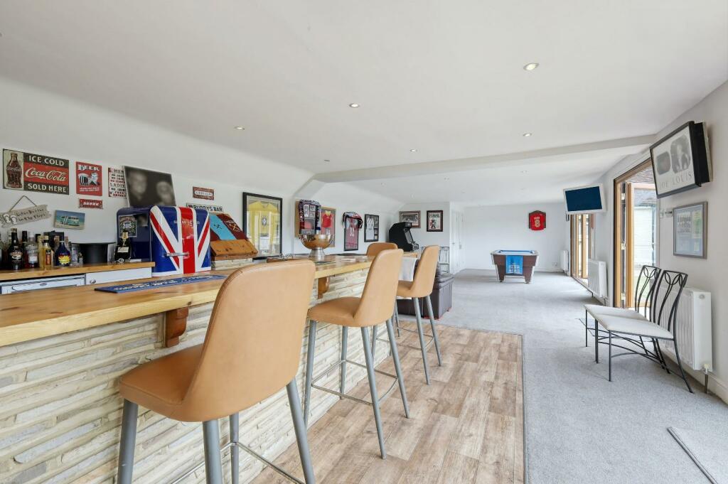 Outbuilding / Games Room - 13.74m x 5.00m (45'1 x 16'5) - Bespoke fitted bar area. Separate w.c. and large storage cupboard. Three sets of French doors onto patio.