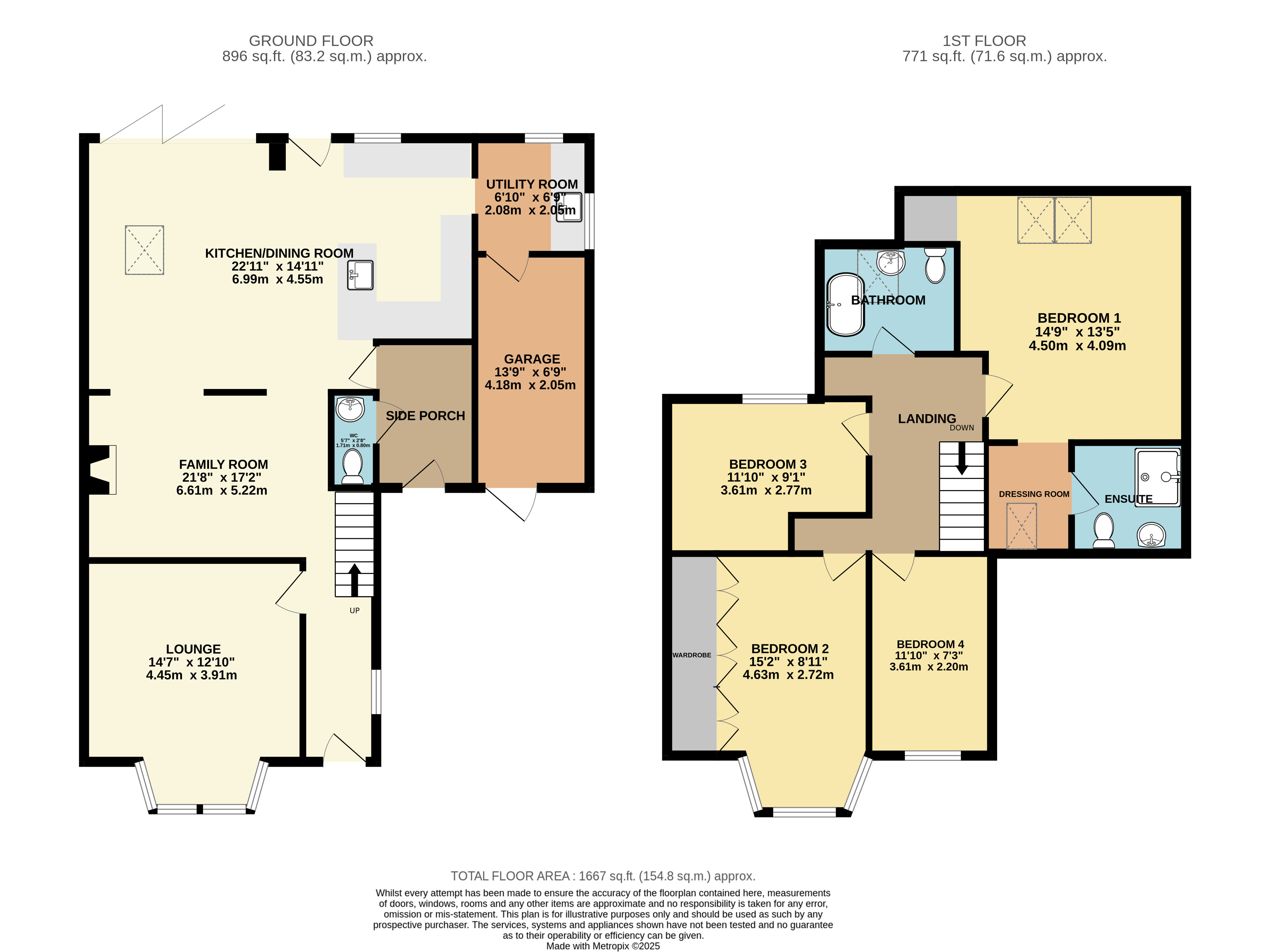 A matching utility room provides additional storage and functionality, with an integral door leading directly to the garage. The ground floor also benefits from a welcoming porch area and a convenient downstairs WC.