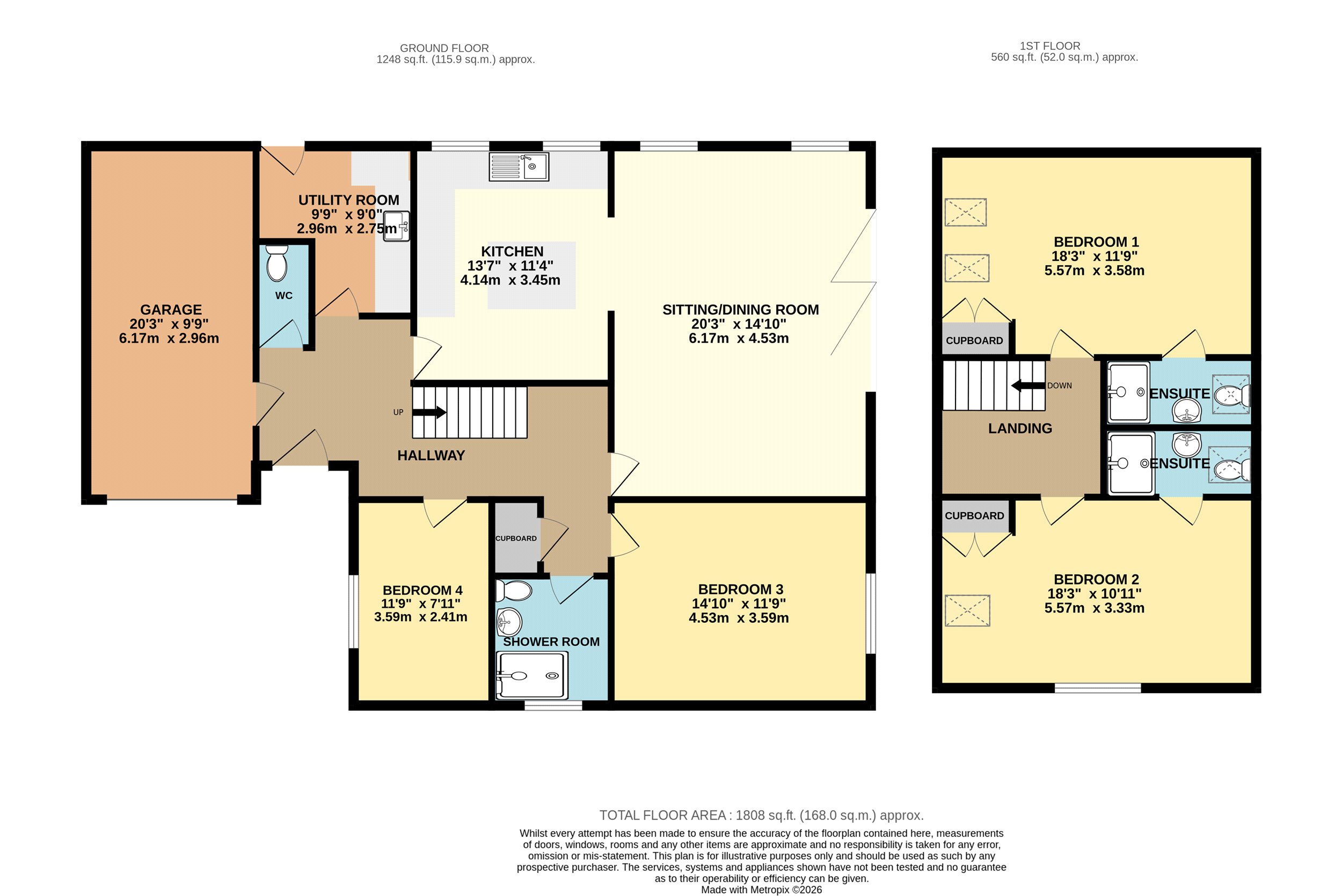 Bedroom 2 18'3" x 10'11" (5.56m x 3.33m).