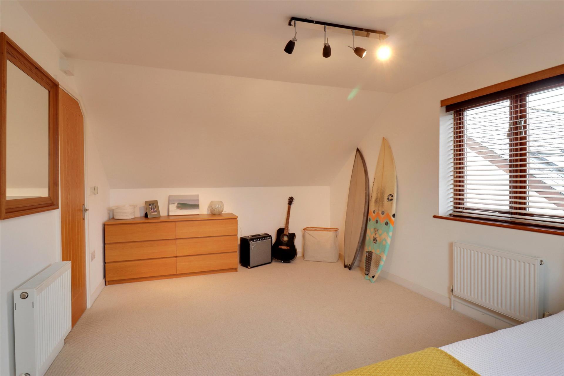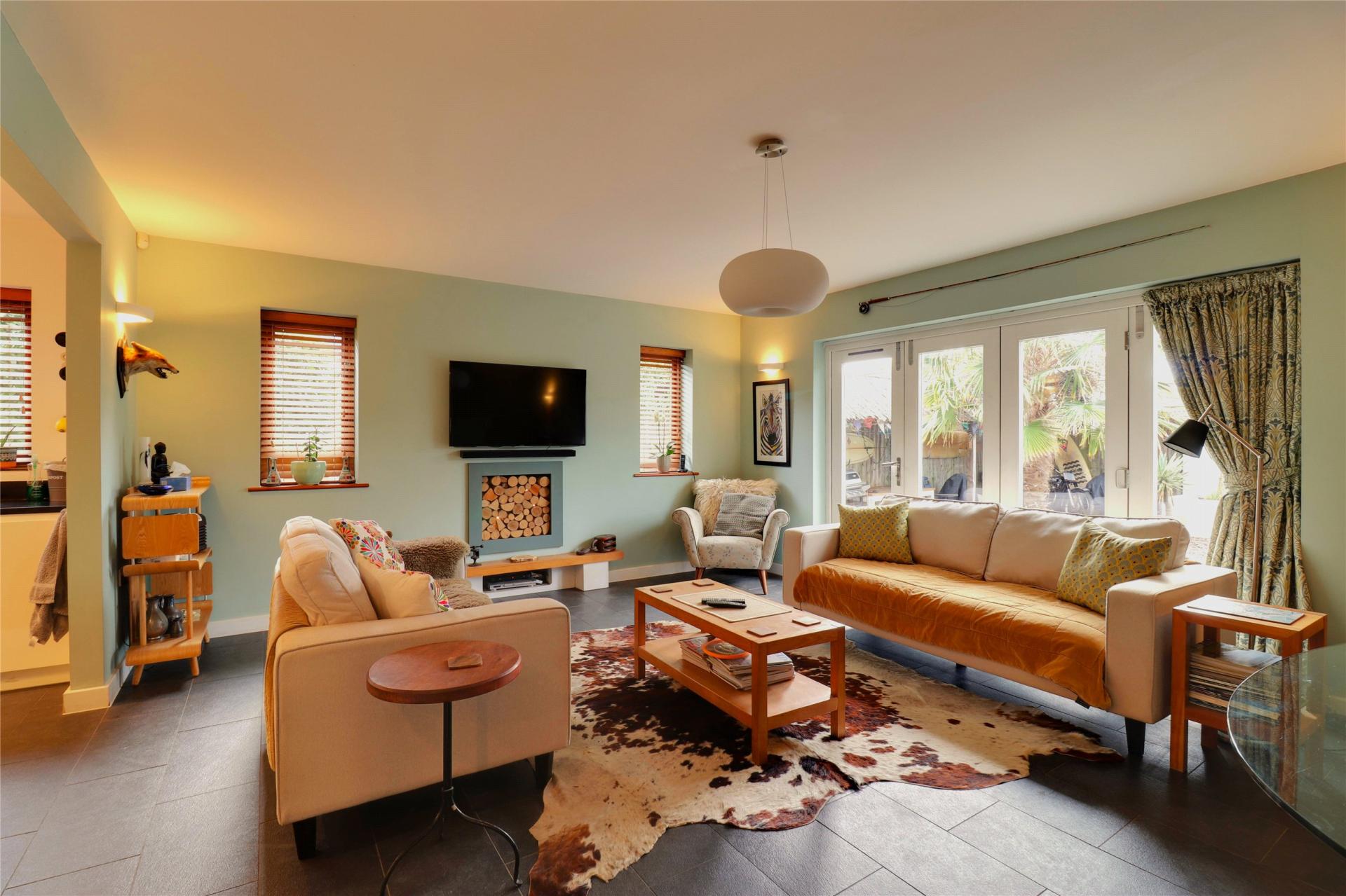 The ground floor enjoys modern, light-filled interiors with underfloor heating, centred around a well-equipped contemporary kitchen flowing seamlessly into the sitting/dining room. Large bi-fold doors open directly onto the rear garden, creating an excellent space for both everyday living and entertaining. Also on the ground floor are two double bedrooms, a family shower room, utility room, WC and a striking vaulted entrance hall which sets the tone on arrival.