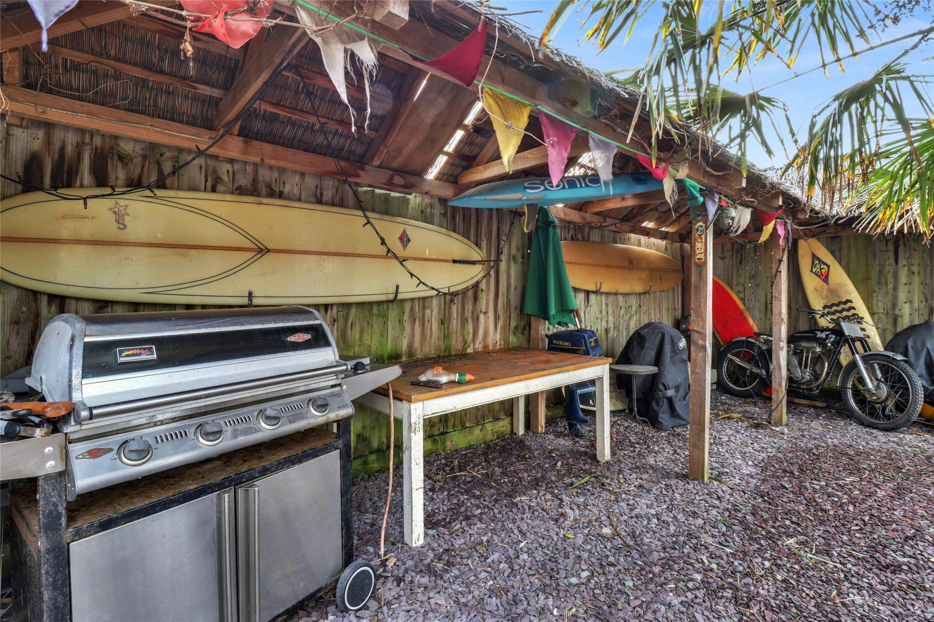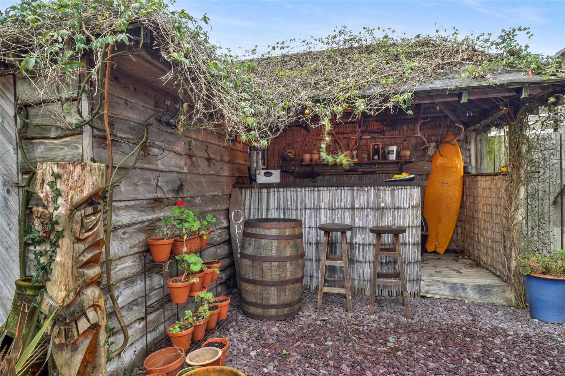LOW-MAINTENANCE REAR GARDEN IDEAL FOR ENTERTAINING, WITH BAR, PATIO AND OUTDOOR COOKING AREA