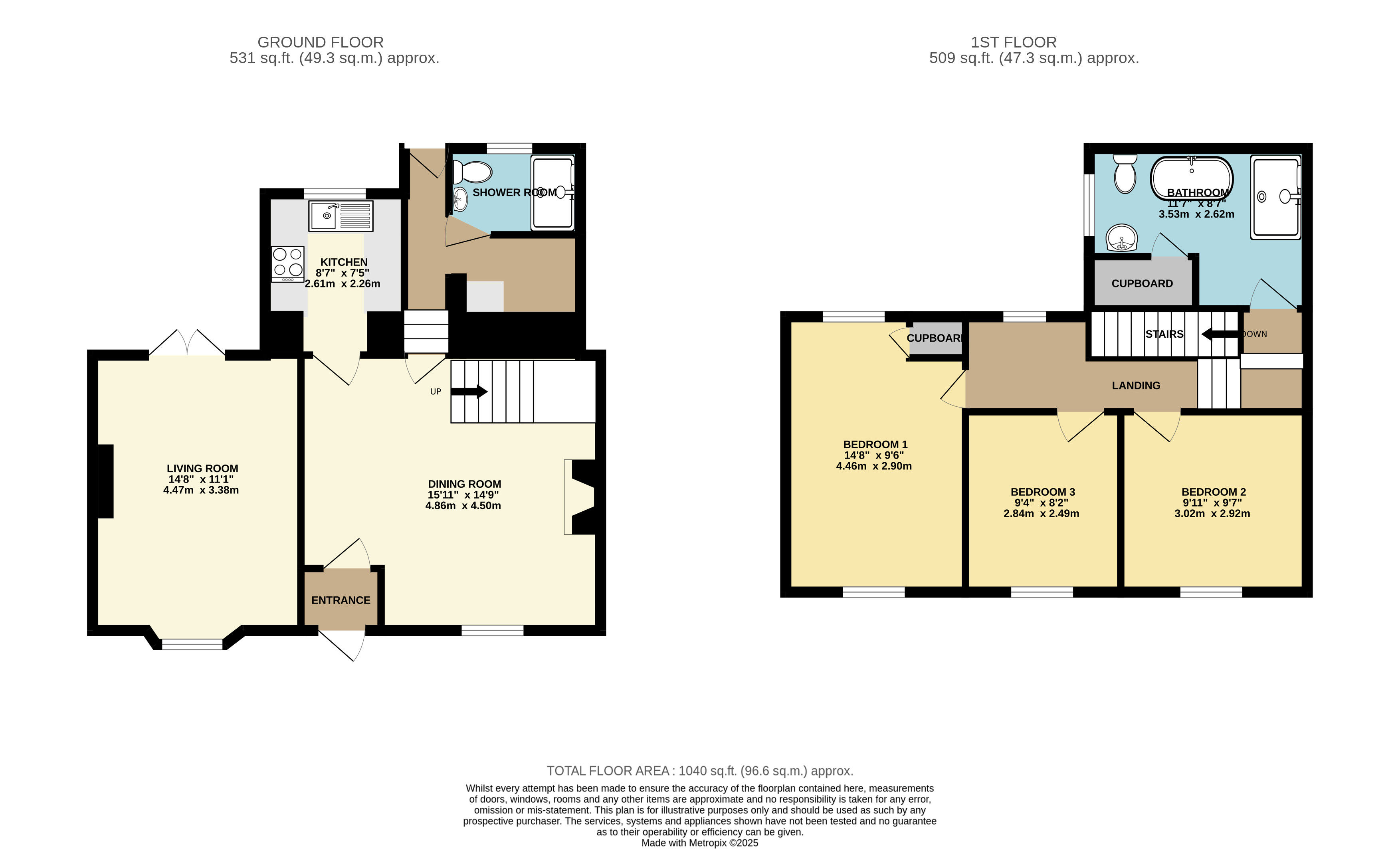 Bedroom 3 9'4" x 8'2" (2.84m x 2.5m).