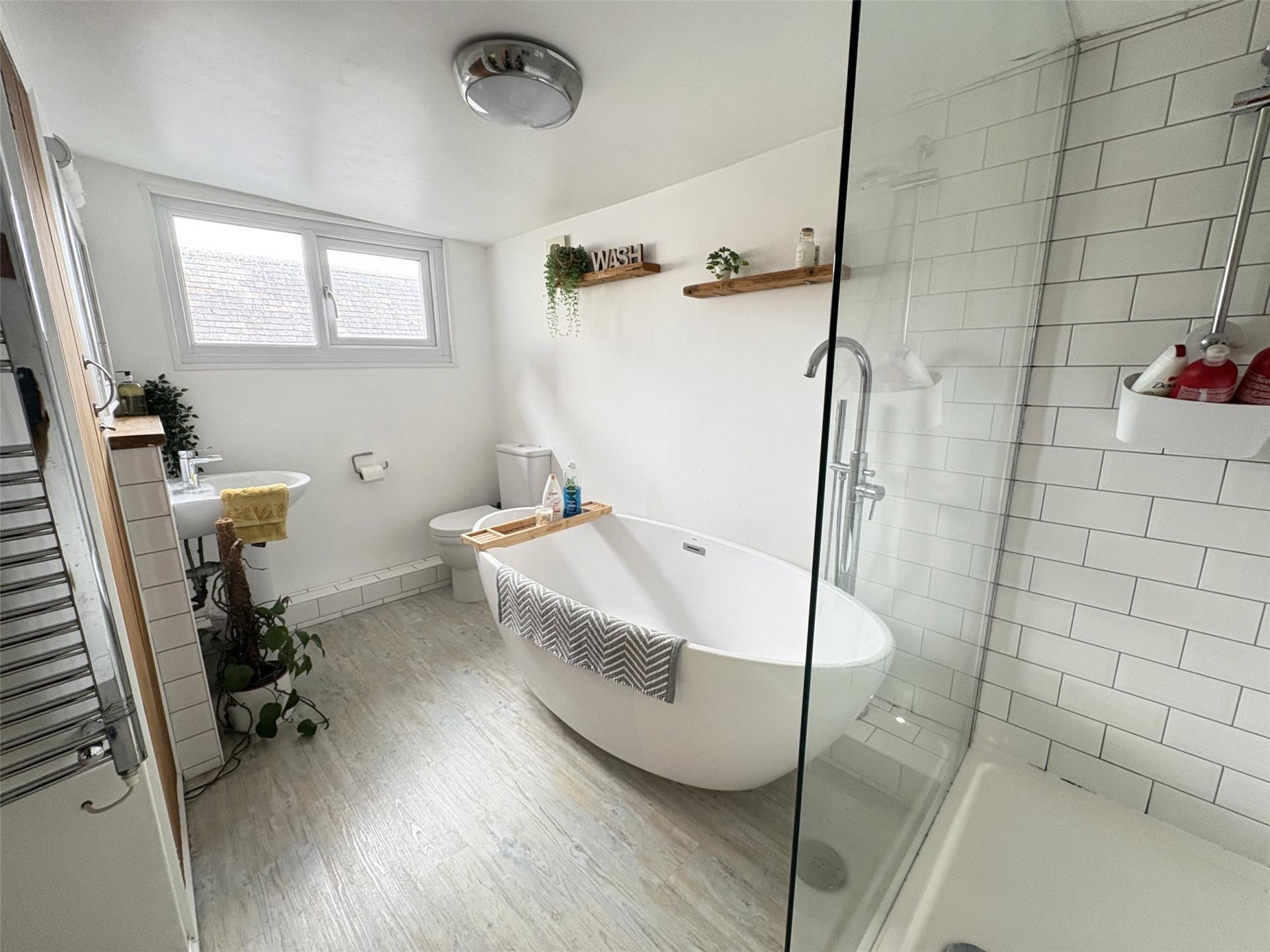 Upstairs, there are three comfortable double bedrooms, each with its own unique appeal, providing ample accommodation for family and guests. The large family bathroom includes both a bath and a separate shower.