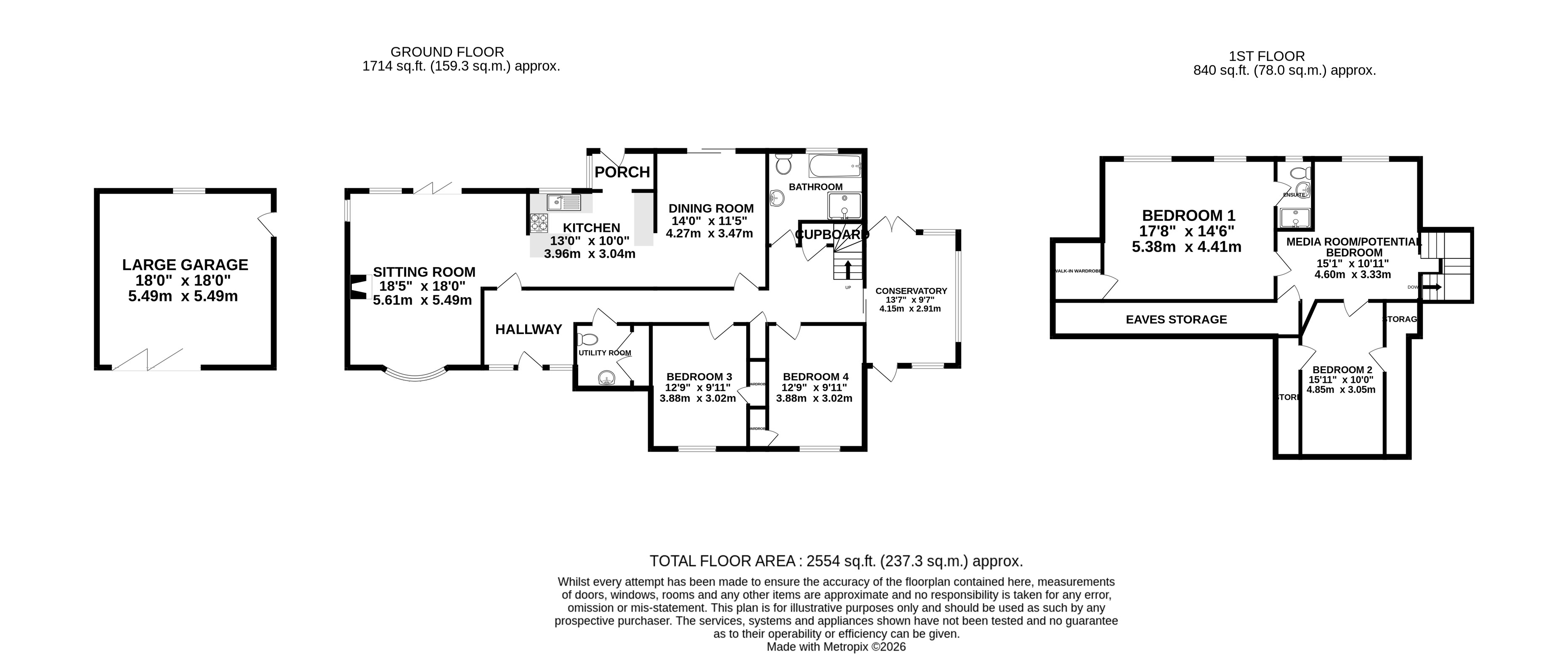 A detached large garage, ample private parking including space for a motorhome or boat, and extensive storage complete the outside offering.