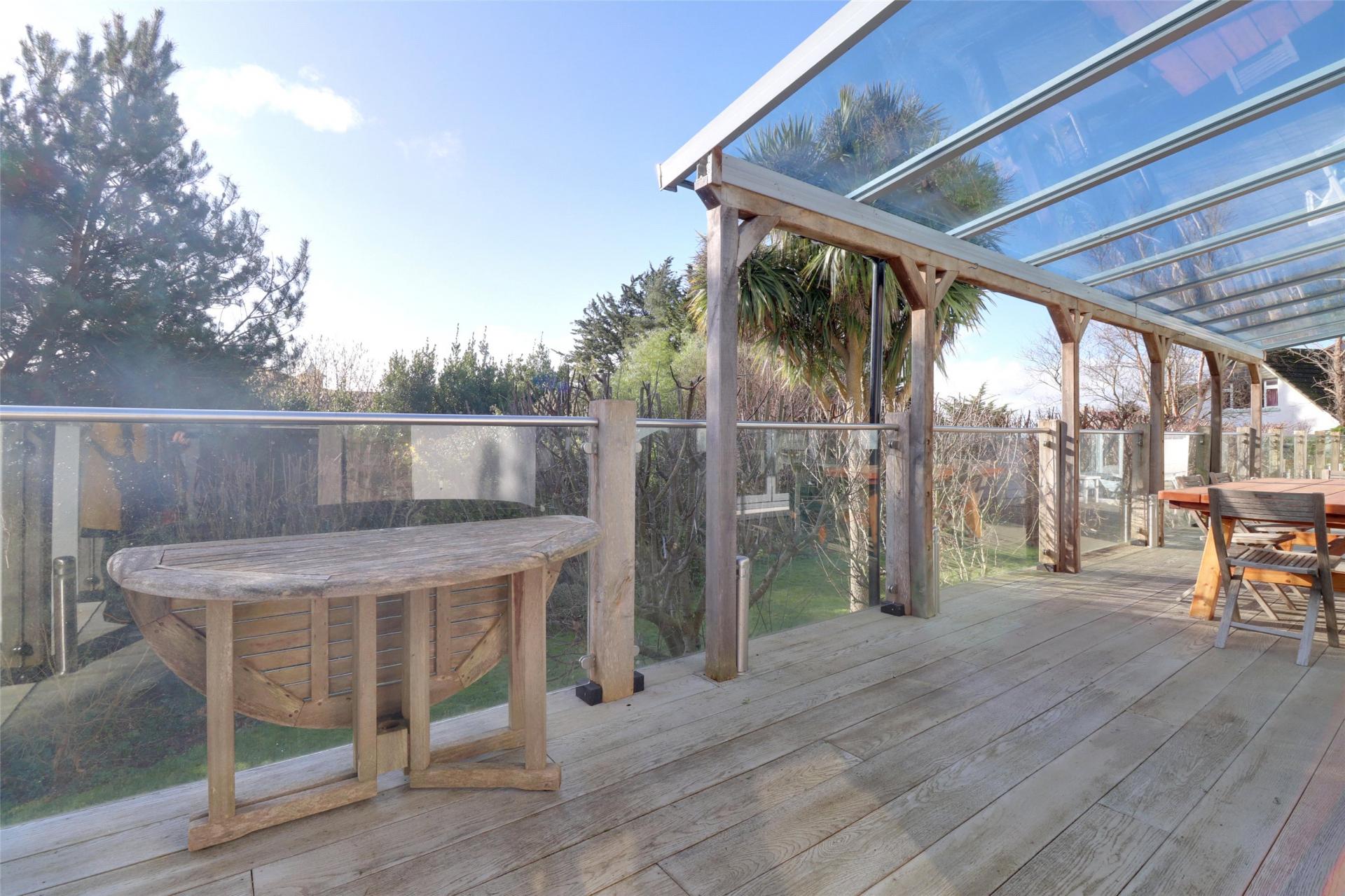 The heart of the home is a striking open-plan living, dining and kitchen space, designed for both everyday living and entertaining, with doors opening directly onto an extensive south-facing sun deck, partially covered and incorporating a well-designed outdoor kitchen. From here, the outlook is across the beautifully established rear garden and beyond towards the Taw Estuary and Braunton Burrows, creating a superb backdrop for alfresco dining and summer evenings.