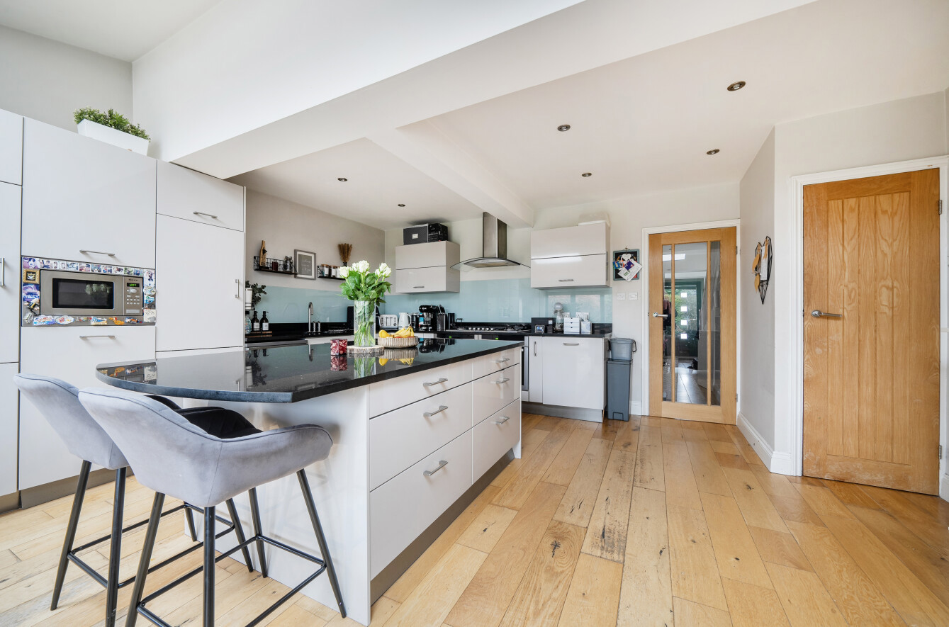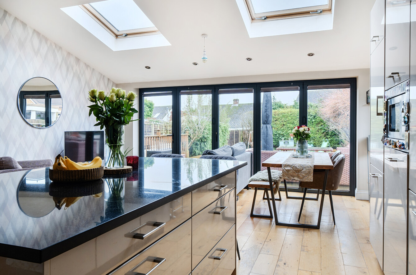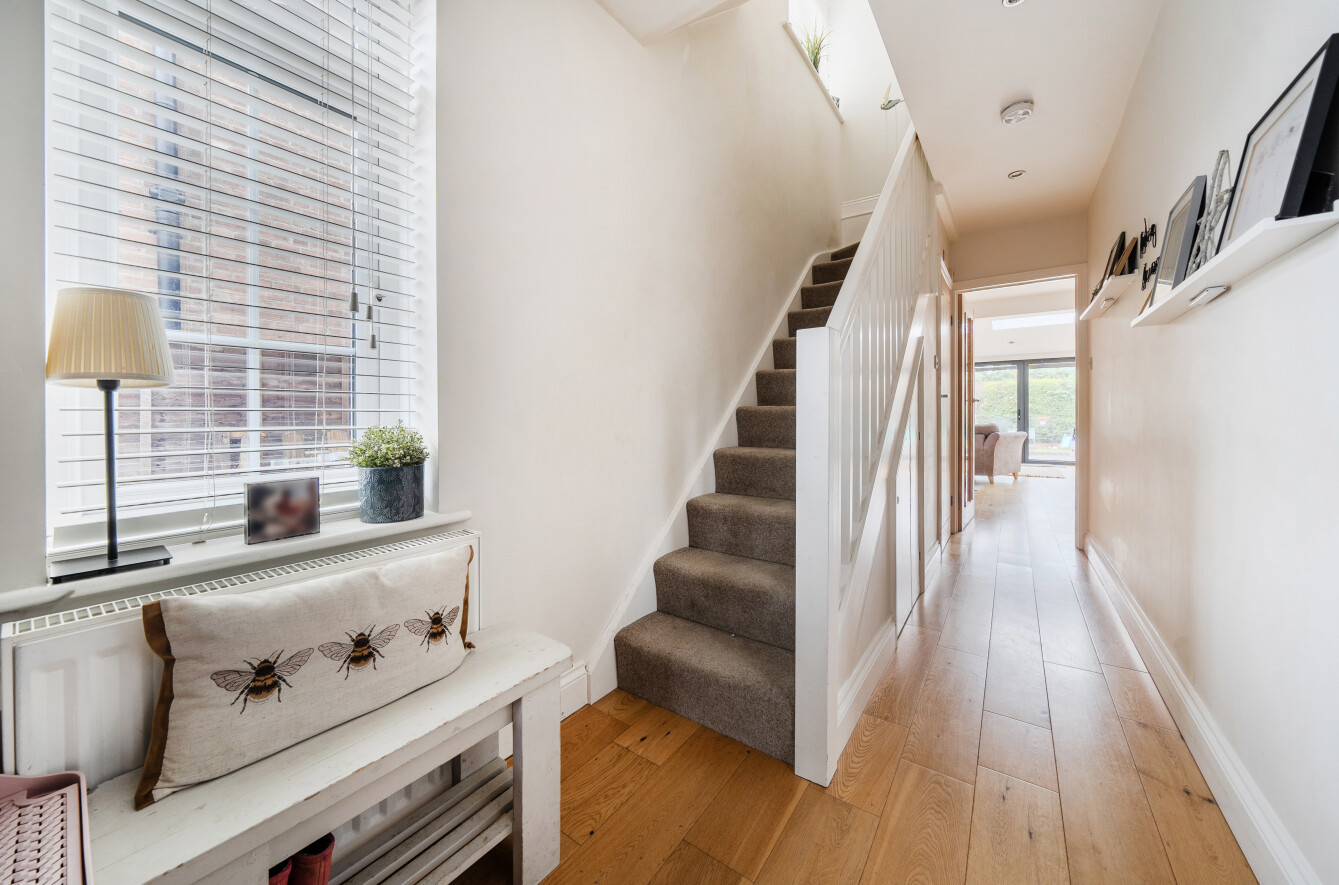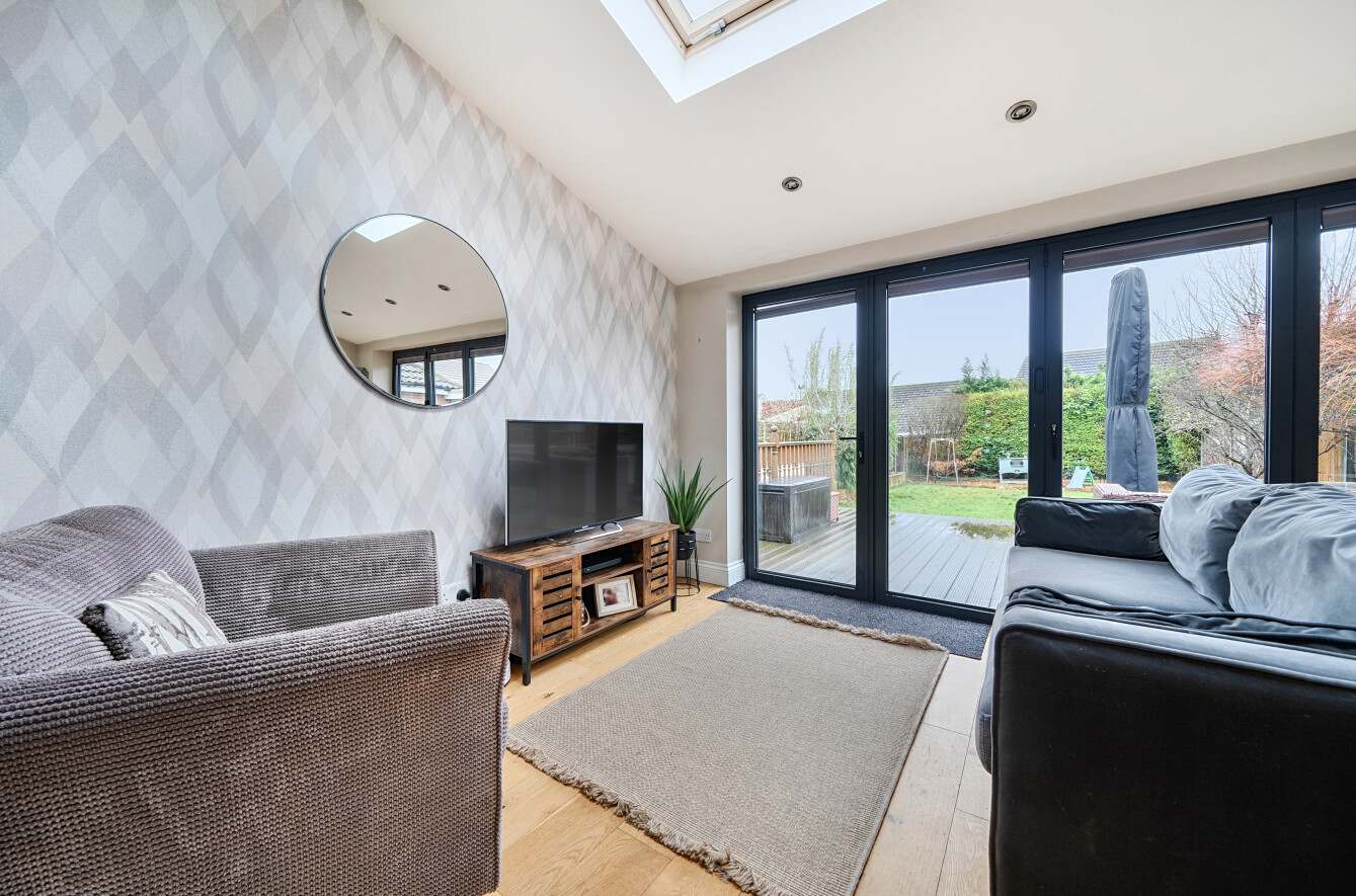Set within the popular Fairlands area of Guildford, this attractive three bedroom detached home offers beautifully presented accommodation with a contemporary finish throughout, ideal for families and those seeking a turnkey property. The house combines classic kerb appeal with a modernised interior, featuring a welcoming frontage with generous driveway parking and a practical layout that flows perfectly for everyday living.A central hallway provides a warm introduction to the home, with clever storage solutions that make excellent use of space and help keep day-to-day life organised. Off the hallway is a separate living room, creating a cosy retreat away from the main entertaining space, complete with a log burner that brings character and comfort, perfect for relaxing evenings in.To the rear, the property opens into an impressive kitchen and dining space that has been finished to an immaculate standard. The kitchen is both stylish and highly functional, with sleek cabinetry, quality work surfaces and a central island providing a natural hub for cooking and entertaining. A dedicated cupboard neatly houses the white goods, keeping the main space clean and uncluttered, while wide bi-fold doors and roof lights flood the room with natural light and create a seamless connection to the garden. A ground floor WC adds further practicality, ideal for guests and busy family life.Upstairs, the first floor offers three well-proportioned bedrooms, including a spacious main bedroom with an attractive bay window. Bedroom two is a generous double and enjoys a pleasant outlook over the rear garden, while the third bedroom provides an ideal child's room, nursery or home office. The bathroom has been updated within the last 12 months by the current owner and is beautifully appointed with a modern suite and contemporary finishes, giving a fresh, luxurious feel.Outside, the rear garden is a real highlight, with a generous lawn and a substantial raised decking area providing the perfect setting for outdoor dining, entertaining or relaxing in the warmer months. A useful outbuilding/shed offers excellent storage, and the property benefits from a degree of separation from neighbouring homes, enhancing privacy and also offering future potential to extend, subject to the usual consents.Fairlands is a highly regarded residential area on the north side of Guildford, well placed for a wide range of local amenities. Nearby you'll find excellent schooling options including popular local primary schools and well-regarded secondary schools, along with convenient access to shops, supermarkets and everyday services. The area also benefits from green open spaces and leisure facilities, while Guildford town centre offers a wider selection of shopping, restaurants and entertainment, together with a mainline station providing fast and frequent services into London.