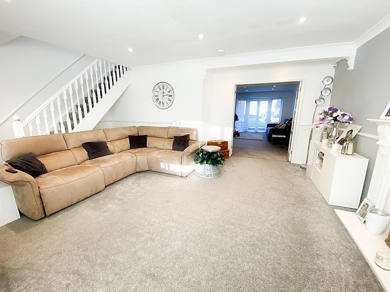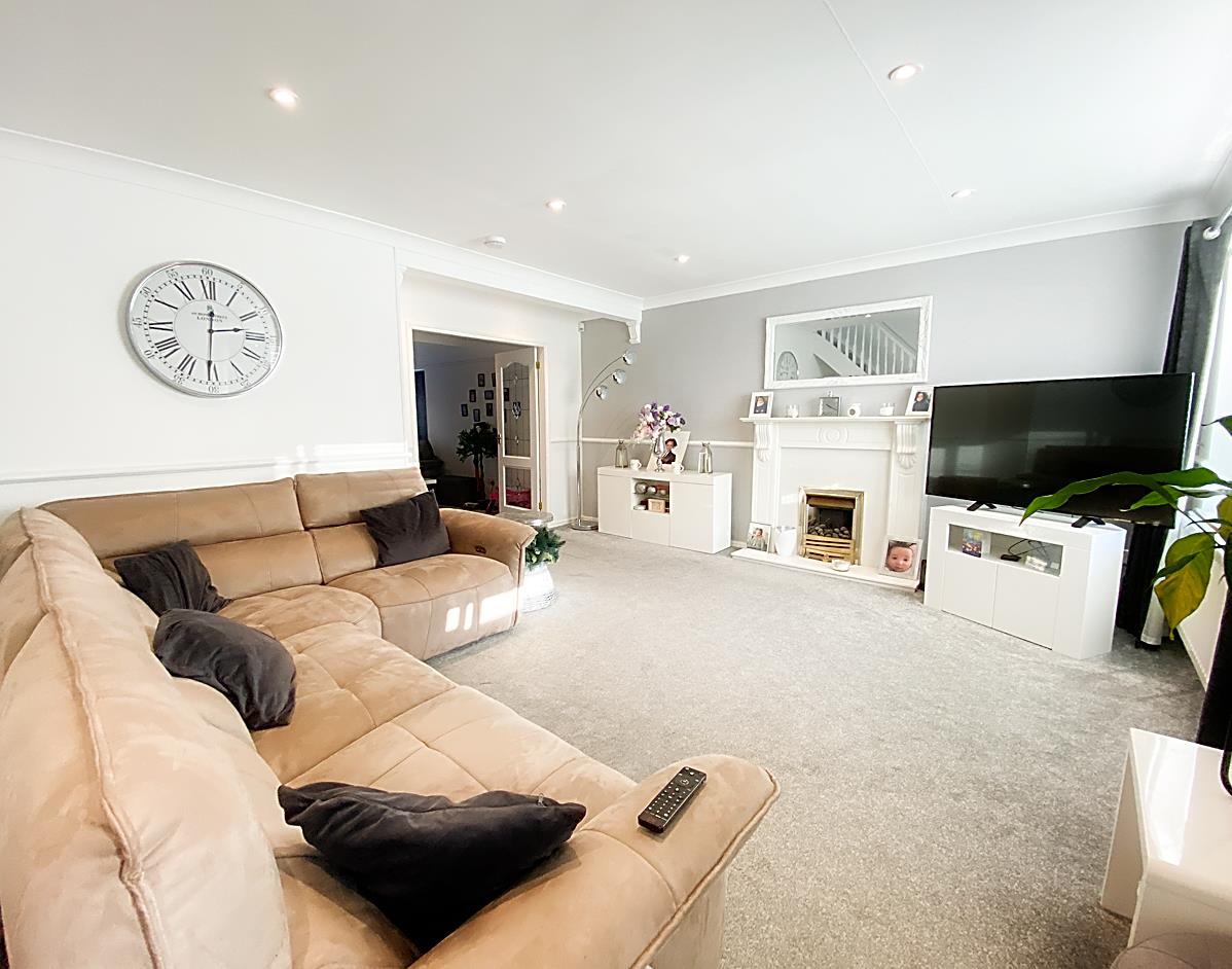 Lounge - 5.70 x 4.78 max (18'8" x 15'8" max) - Double glazed window, fireplace with living flame effect gas fire. Stairs to the first floor landing, radiator and double doors leading to the family room.