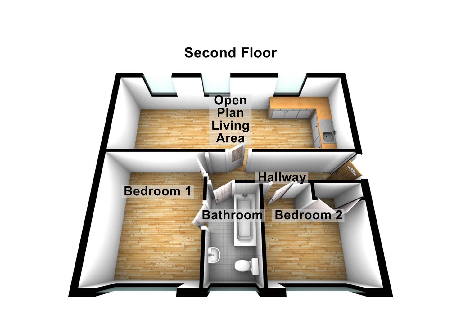 Open Plan Living Area - 7.44 x 3.02 - A wonderful space, south facing with three windows which allow for an abundance of natural light. The kitchen area is fitted with a range of wall and base units with work surfaces over, integrated oven and hob and sink unit.