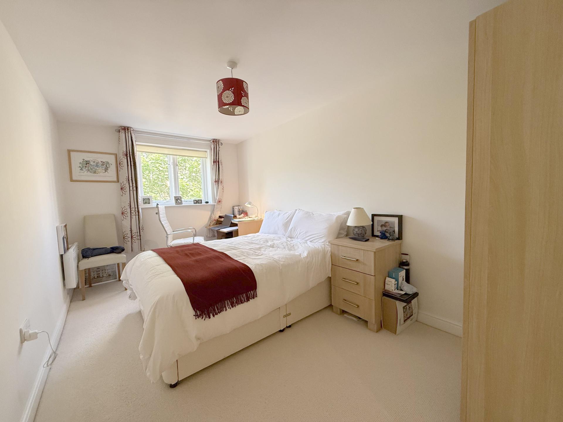 Double glazed window to side, wall mounted convector heater, door to en-suite shower room, power points.