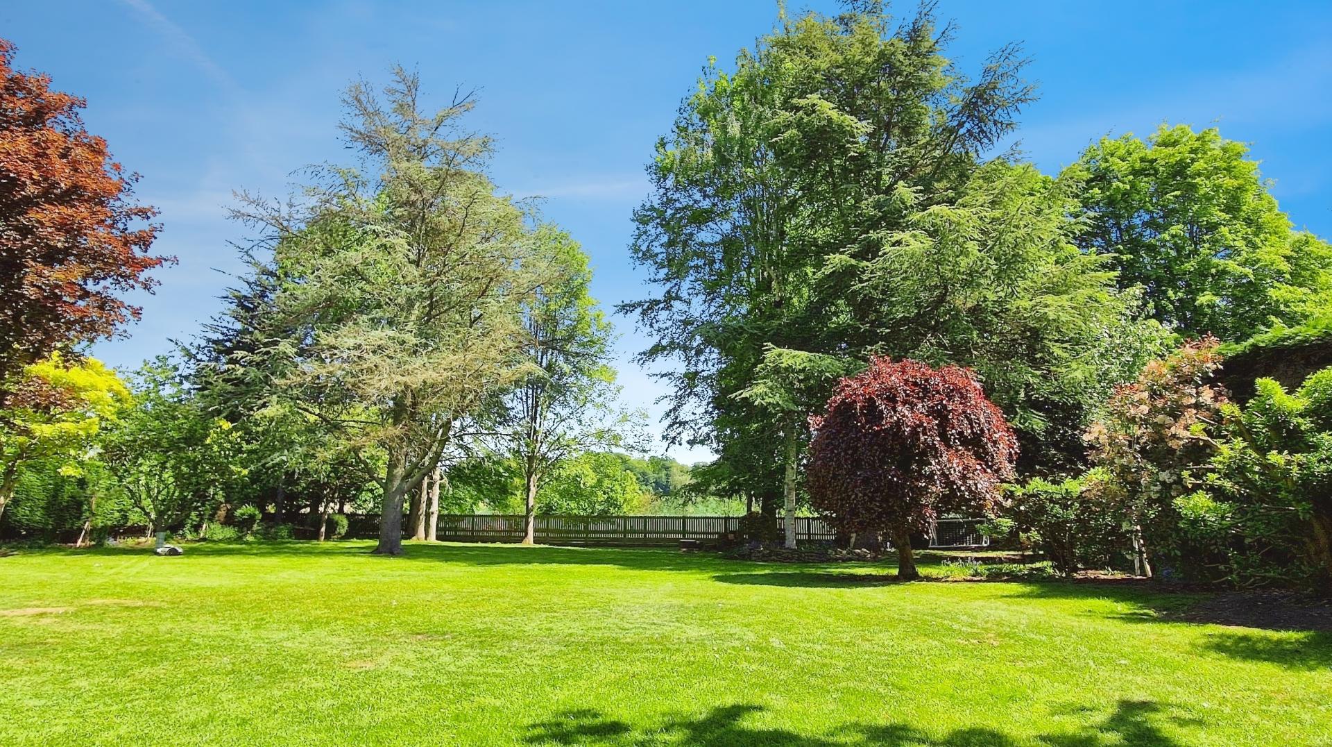 To the rear lies a substantial and fully enclosed garden of exceptional appeal. A paved patio seating area, enclosed by low level stone walling, provides an ideal space for outdoor entertaining. Beyond, the garden opens into a vast lawn interspersed with a spinney of mature trees, fruit trees and thoughtfully planted flowerbeds, creating a haven for wildlife. The setting is further enhanced by stunning far reaching views over open farmland, offering a peaceful and idyllic backdrop.