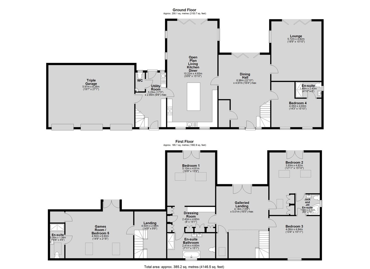 The Ground Floor has been thoughtfully curated for both refined entertaining and comfortable family living, comprising a formal Lounge of generous proportions and a spectacular Open Plan Living Kitchen Diner – perfectly suited to hosting on both an intimate and grand scale. A well appointed Utility Room and Cloakroom/WC provide practicality, while a substantial Double Bedroom with En-suite offers ideal guest or multi generational accommodation. To the First Floor, an elegant Galleried Landing overlooks the Reception Hall below and leads to Three beautifully presented Bedrooms. The Principal Suite is a sanctuary in its own right, complete with a Dressing Room and a luxurious five piece En-suite Bathroom. The Two further Bedrooms are connected by a stylish Jack and Jill En-suite. A further staircase ascends to a self contained level, revealing a Study/Landing area and a superbly versatile room currently utilised as a Games Room. With the benefit of its own En-suite Shower Room, this space offers flexibility and could effortlessly serve as a Fifth Bedroom, private Suite or self contained Annex. Externally, the grounds are equally impressive. The integral triple garage enhances the home's practicality, while the generous rear garden provides a tranquil and picturesque setting, gently backing onto the village beck and offering a wonderful sense of privacy and serenity. This remarkable home represents a rare fusion of architectural presence, luxurious accommodation and an enviable village setting. Viewing is essential to fully appreciate the lifestyle opportunity on offer.
