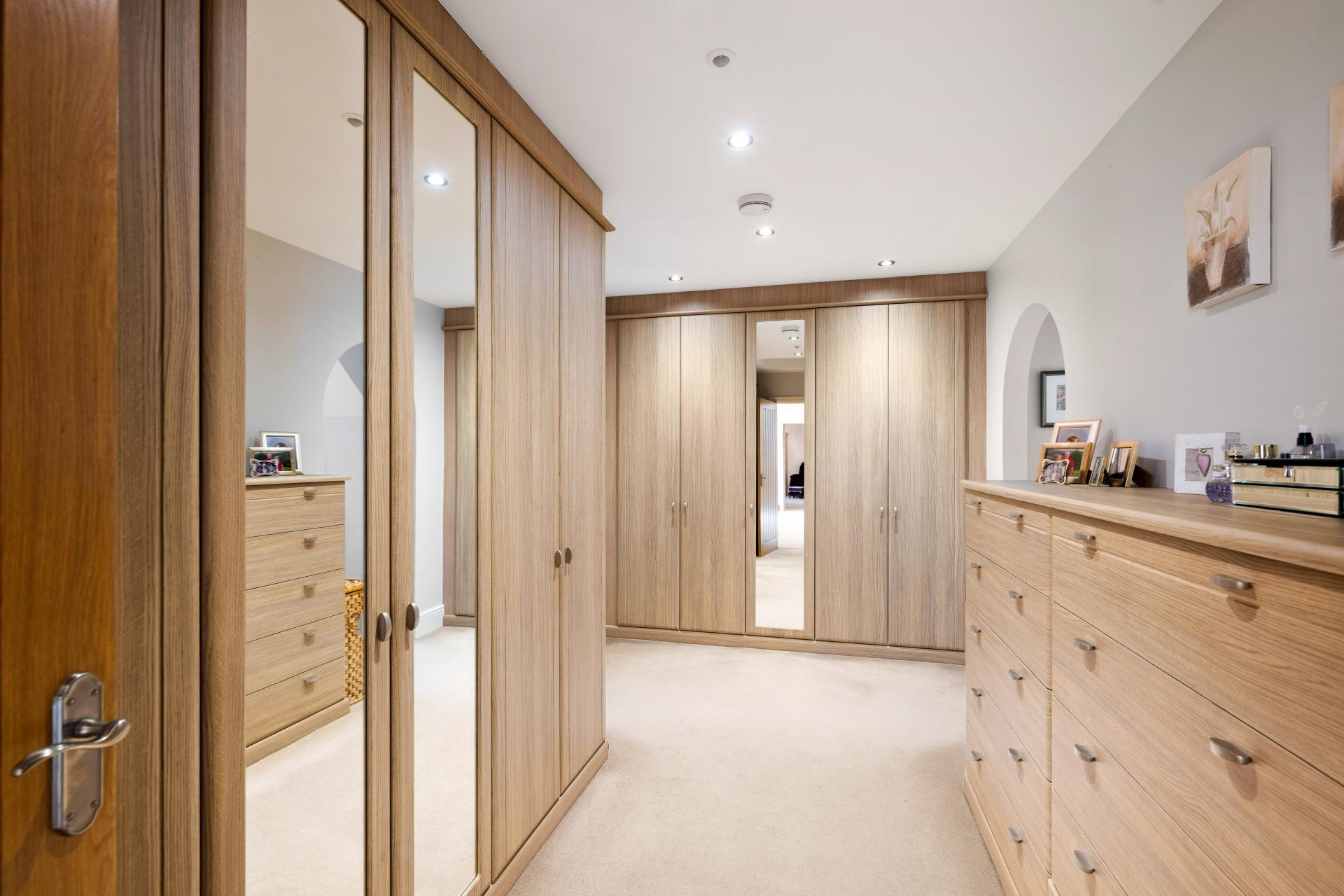 DRESSING ROOM 15' 1" x 7' 11" (4.60m x 2.43m) Fitted with a comprehensive range of wardrobes and drawers, spotlights on a motion sensor and underfloor heating.
