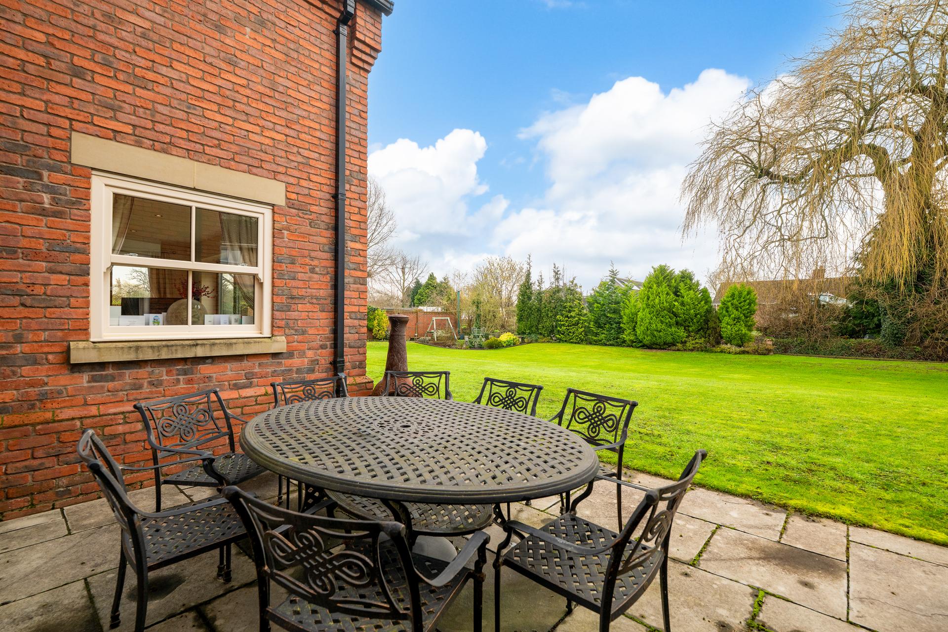 OUTSIDE To the front of the property, a substantial gated gravel driveway discreetly sets the home back from Ryland Road, providing extensive off street parking and access to the triple garage. The frontage is further enhanced by a neatly maintained lawn with attractive slate edged borders, creating an impressive first impression.