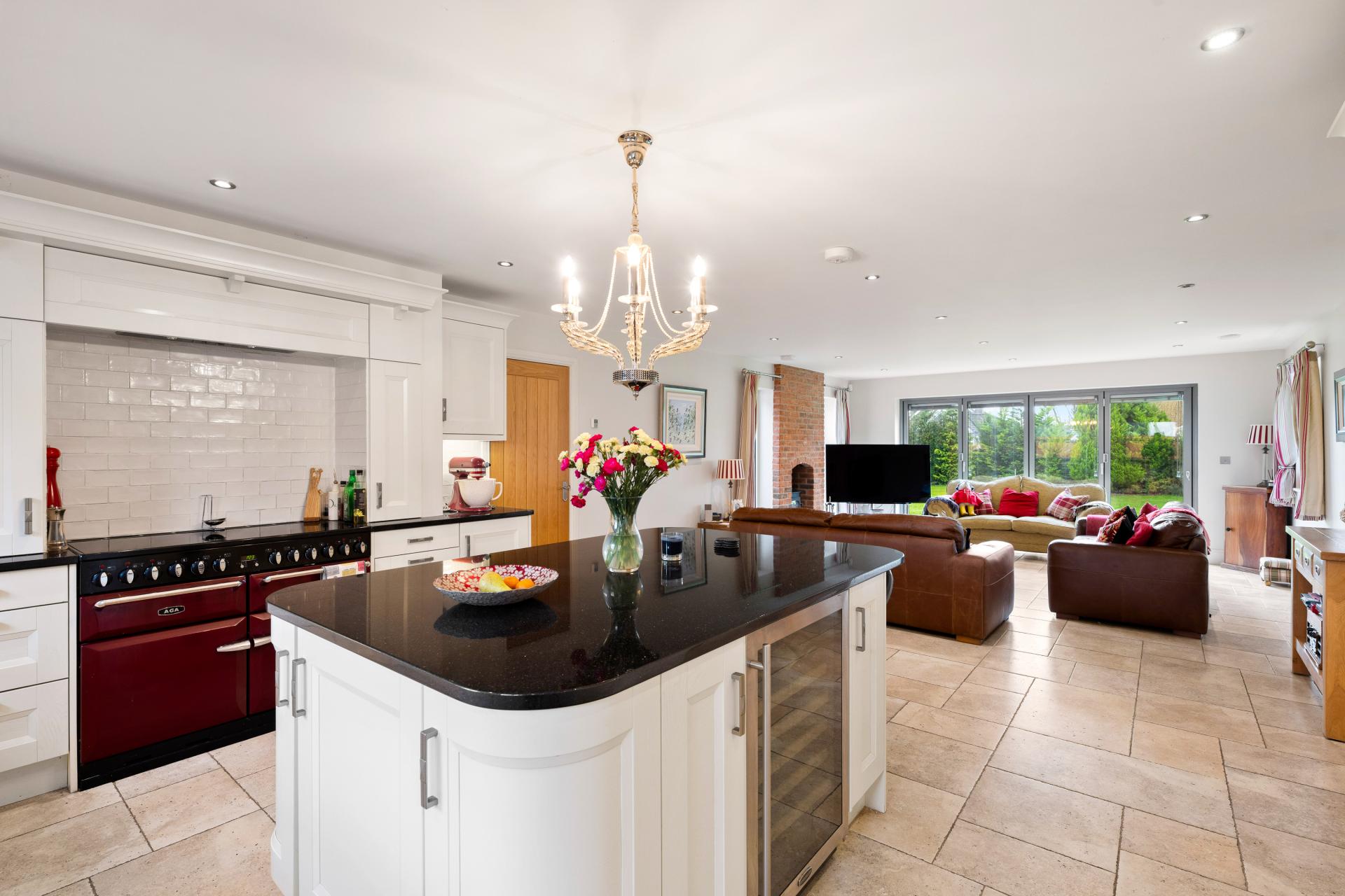 OPEN PLAN LIVING KITCHEN DINER 33' 6" x 15' 10" (10.22m x 4.83m) A fantastic open plan space, the kitchen is fitted with a high specification range of wall and base units, complemented by granite work surfaces, an undermount 1½ bowl sink with side drainer and a Quooker boiling water tap. Integrated appliances include a fridge, freezer, dishwasher, wine cooler and an Aga range cooker. The kitchen features central island with breakfast bar, tiled flooring with underfloor heating, tiled splashbacks, spotlights and two double glazed windows to the front aspect.