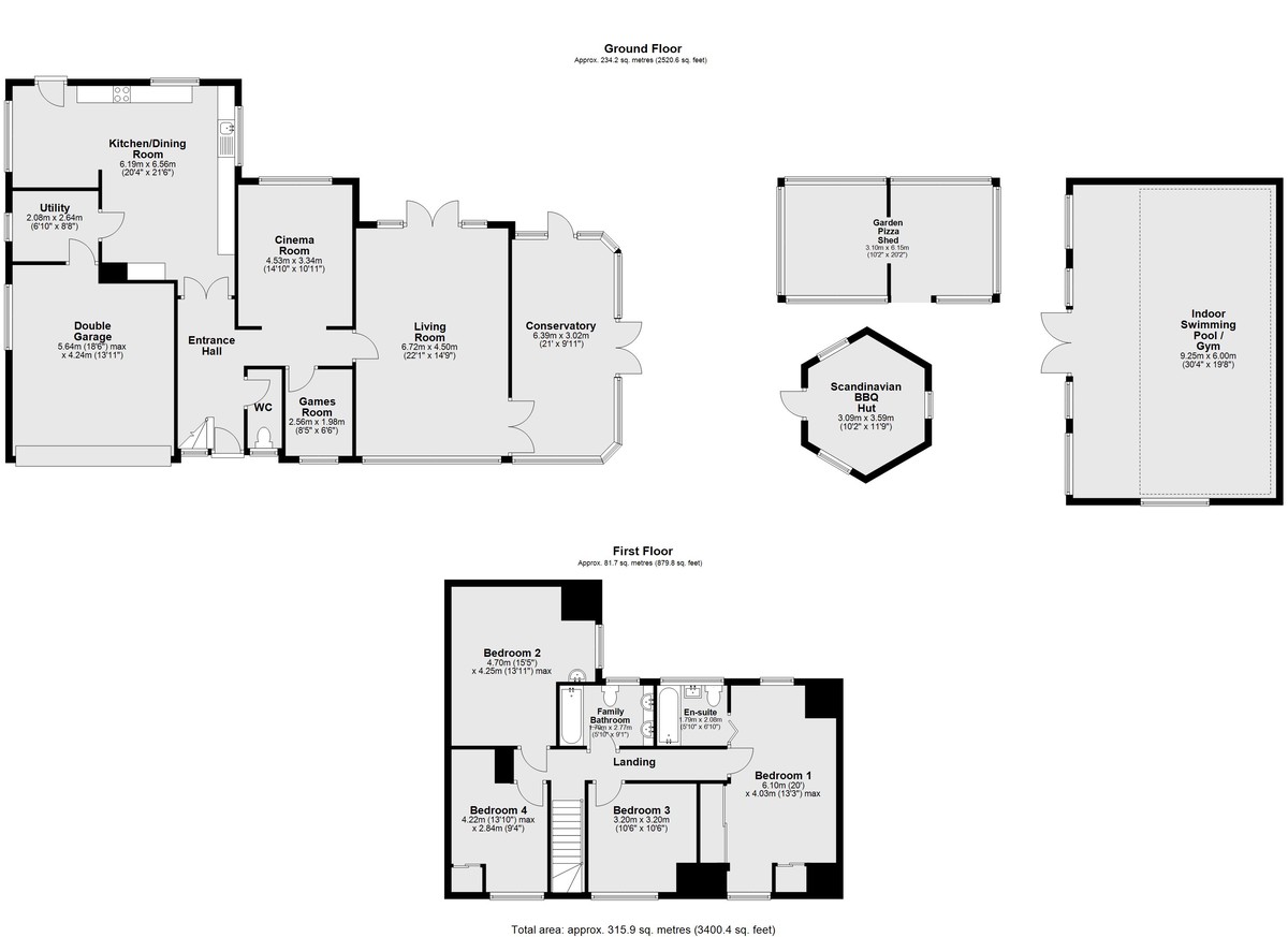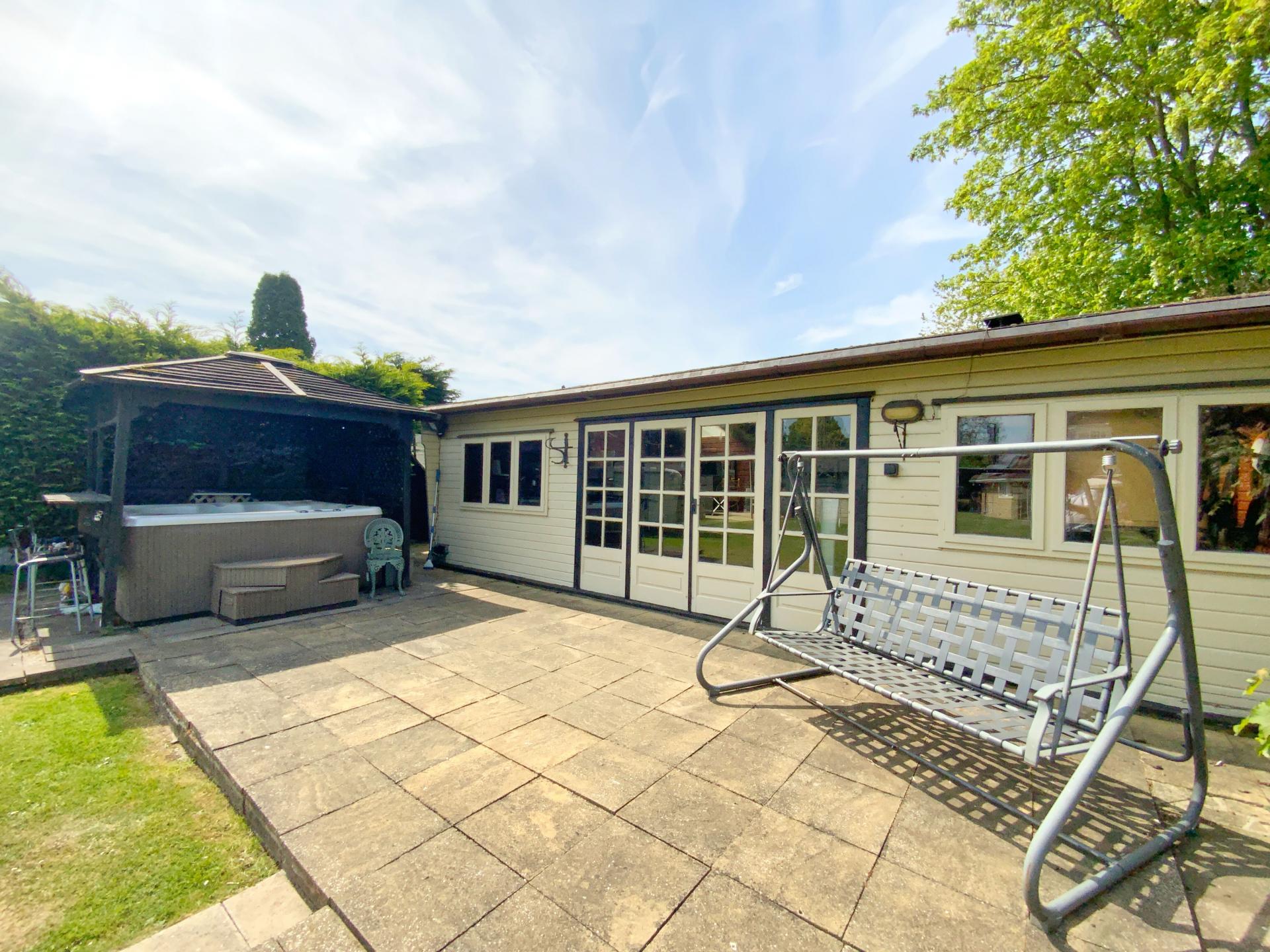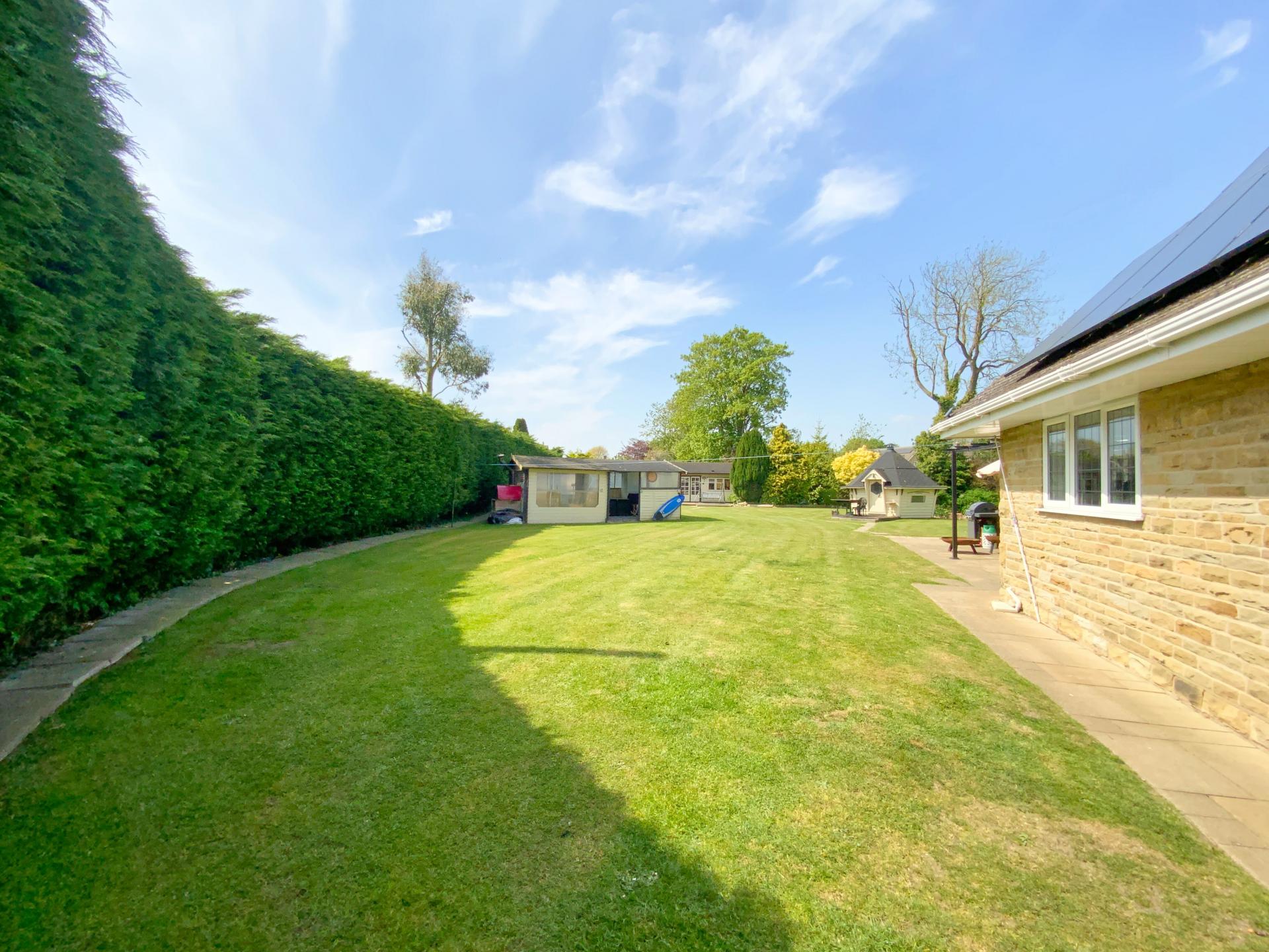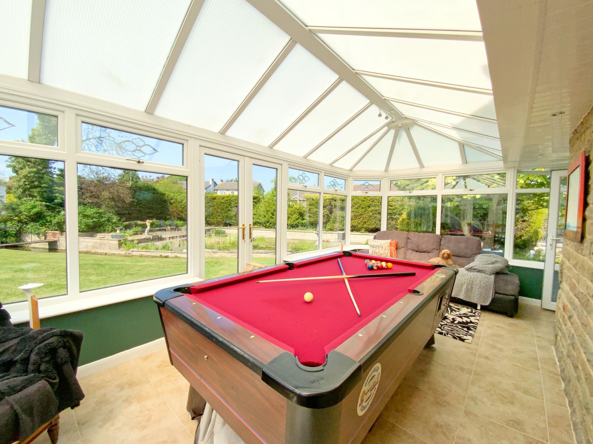 OUTSIDE To the front of the property there is a five-bar gated driveway giving access over the beck via a bridge to ample off street parking for multiple vehicles, a covered carport area, a lawned area with bin stores, lawned garden which slops down to a sunken pathway which walks adjacent to the beck with views over the beck and pond and a paved seating area. To the side and rear of the property there is an extensive lawned garden with mature shrubs and trees, a barbeque area/pizza hut, paved seating area with a covered pergola and a pool house with a full sized swimming pool.