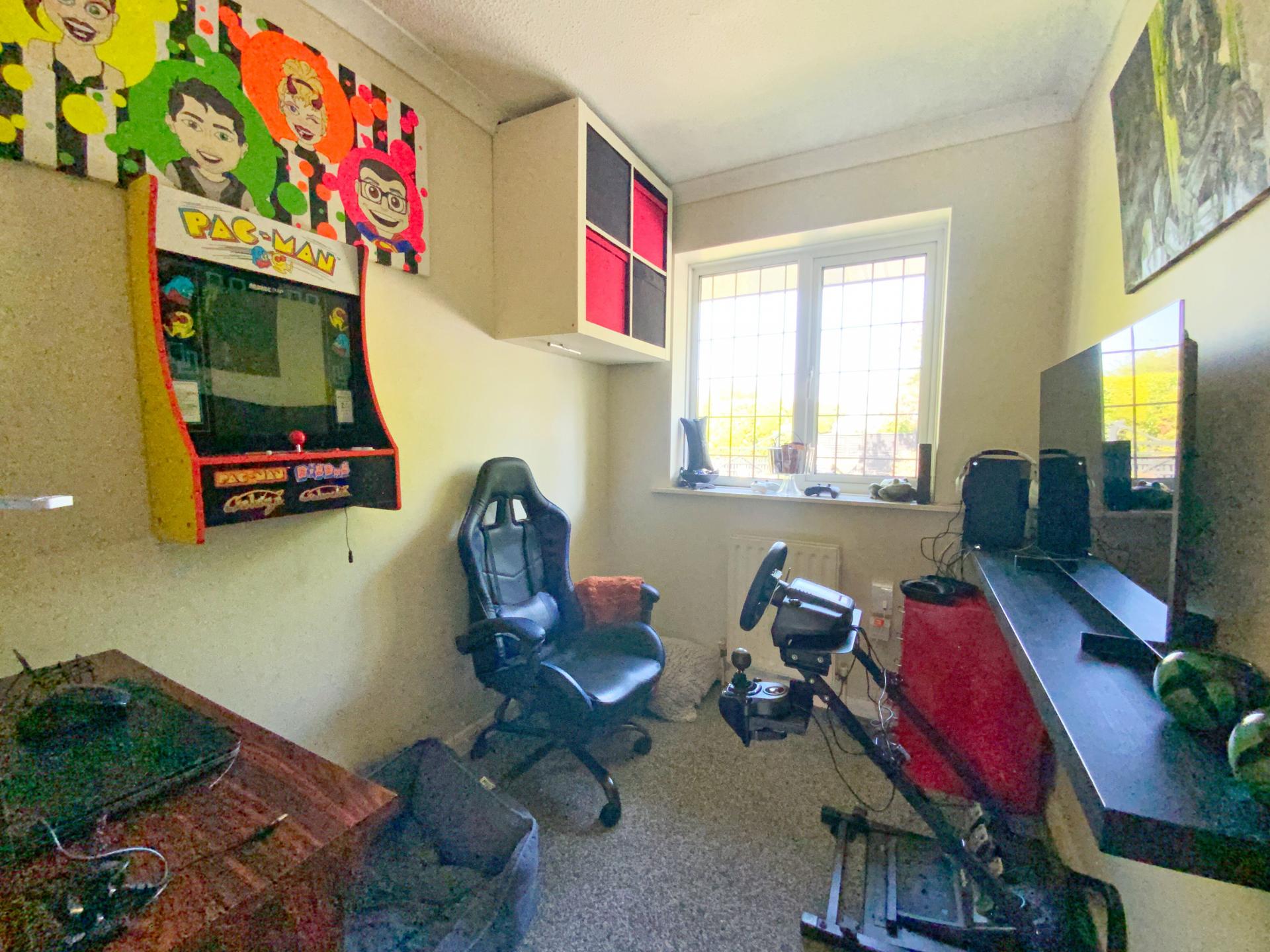 GAMES ROOM 2' 56" x 1' 98" (2.03m x 2.79m) With UPVC leaded window to the front aspect, double radiator and fitted shelving.
