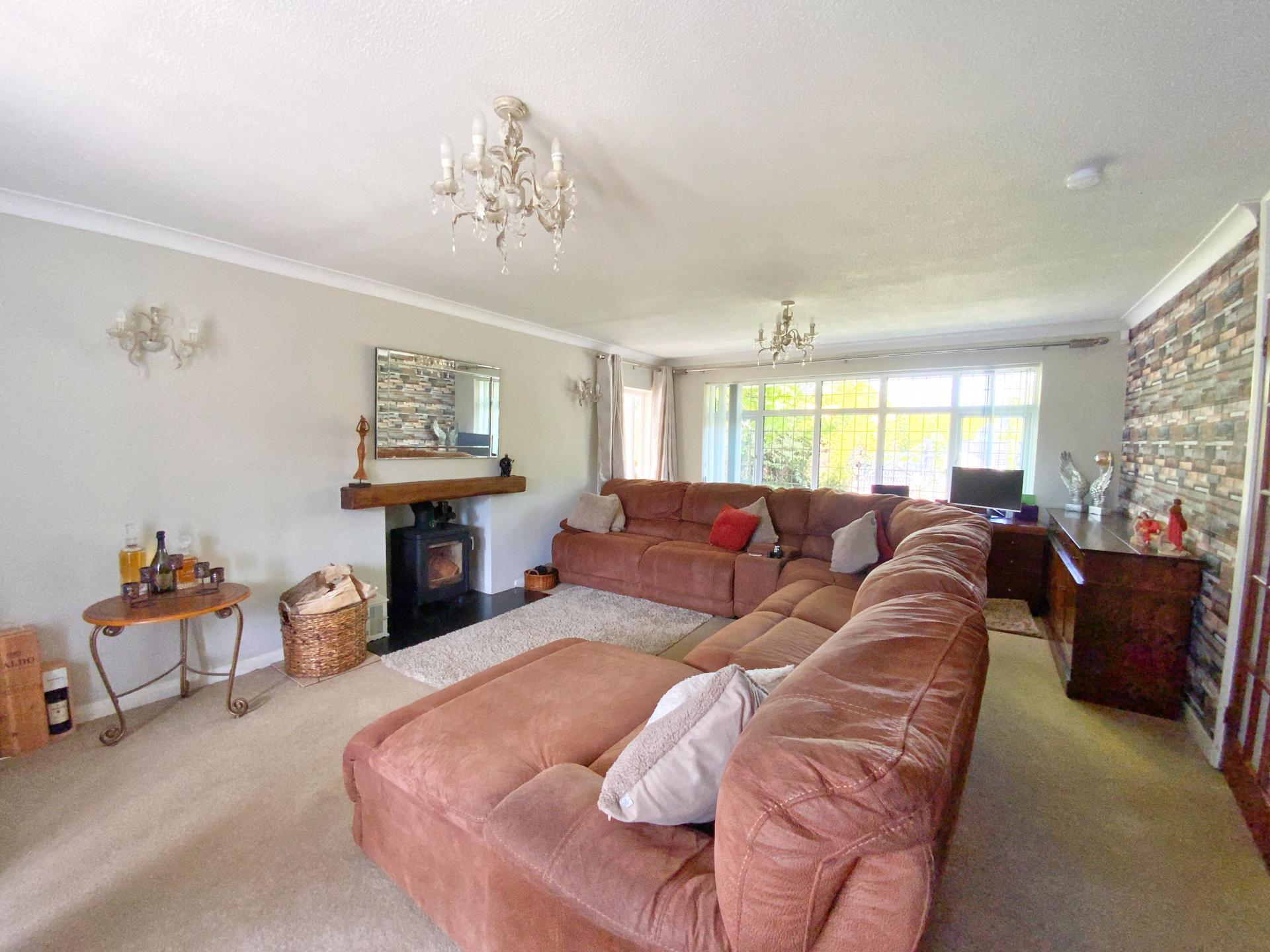 LOUNGE 6' 72" x 4' 50" (3.66m x 2.49m) With UPVC leaded window to the front aspect with radiator below, UPVC windows and doors to the rear garden, log burner with tiled hearth and feature wooden surround, glass panelled door to the inner hallway and UPVC double doors to the conservatory.