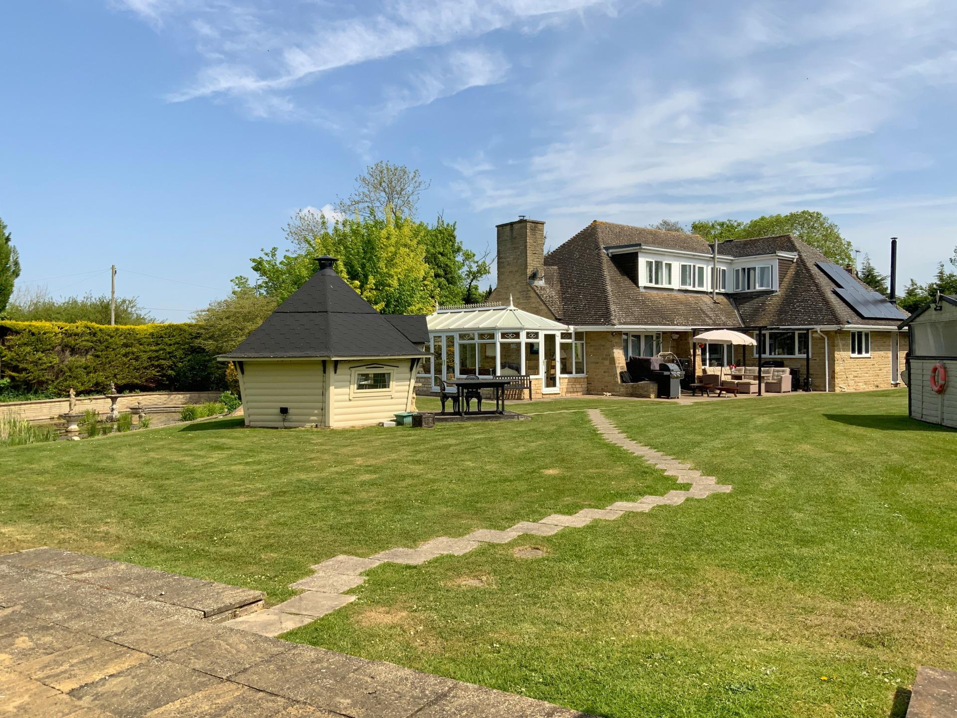 DESCRIPTION This is a beautiful Detached Family Home, situated on a plot of just under 0.75 acres (STS), set within this picturesque Village of Dunholme. The property benefits from having a wide range of facilities including an Indoor Swimming Pool/Gym, Pizza Hut/Garden Area, a meandering Beck which passes through the middle of the plot, Water Feature and Pond. The internal accommodation comprises of modern fitted Dining Kitchen/ Family Room, Utility Room, integral double Garage, WC, Study, Games Room, Living Room, Conservatory and stairs rising to the First Floor Landing giving access to four well-appointed Bedrooms with En-suite to Bedroom One and Bathroom. Viewing of this property is highly recommended to appreciate the accommodation on offer.