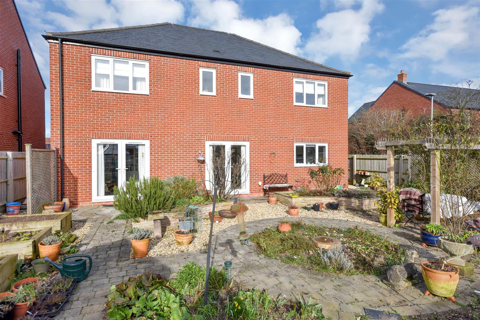 Outside - The property has an open plan frontage and double width block paved driveway with paved paths leading to the front door. The south facing garden, professionally landscaped has block paving, gravelled areas, an abundance of flowers, herbs and a vegetable garden. There is a greenhouse with a domed roof. A patio area and an area to the side of the property with a paved and gravelled surface.