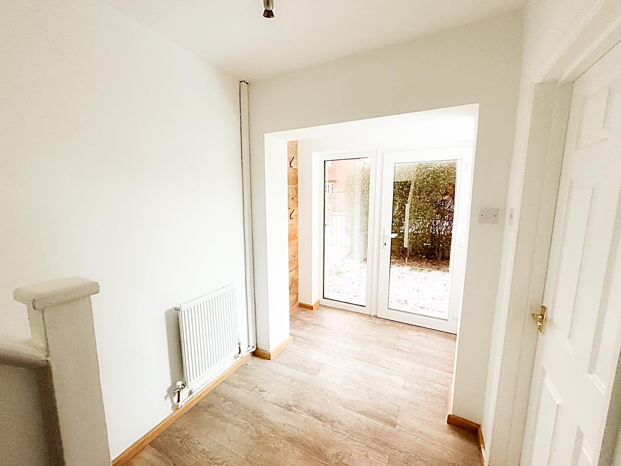 Hallway - 4.05 x 1.84 max (13'3" x 6'0" max ) - Laminate flooring, radiator, understairs cupboard, stairs to first floor landing, access to lounge and kitchen