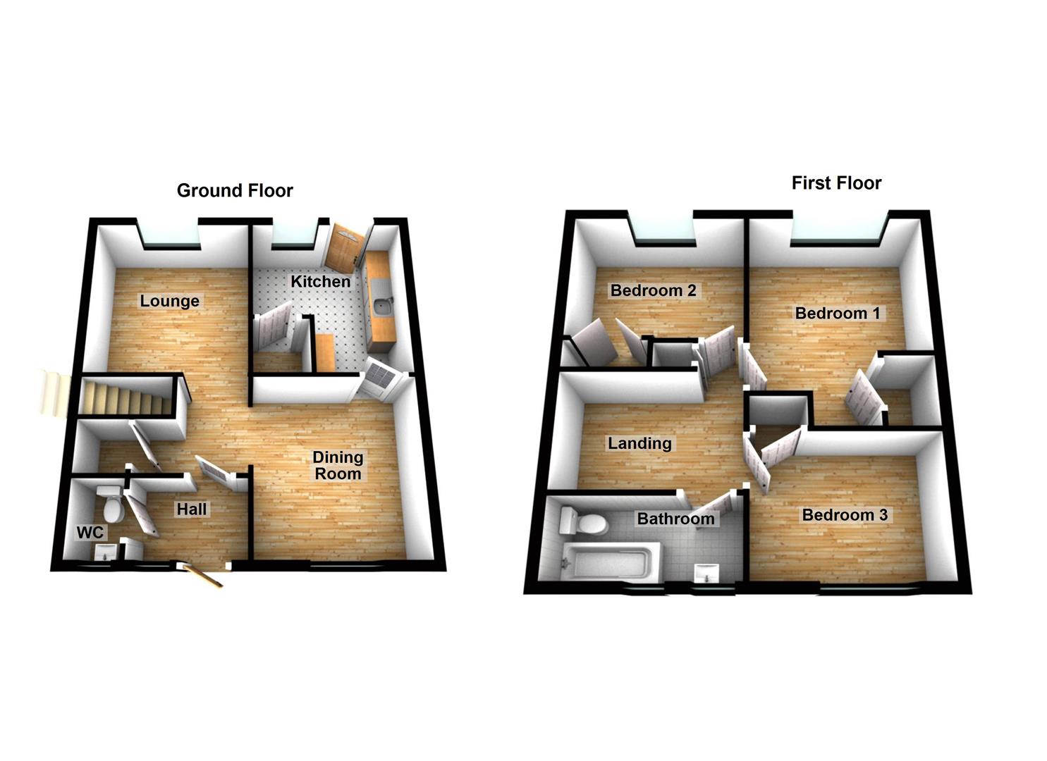 Downstairs W/C - Double glazed window, toilet, wash hand basin.