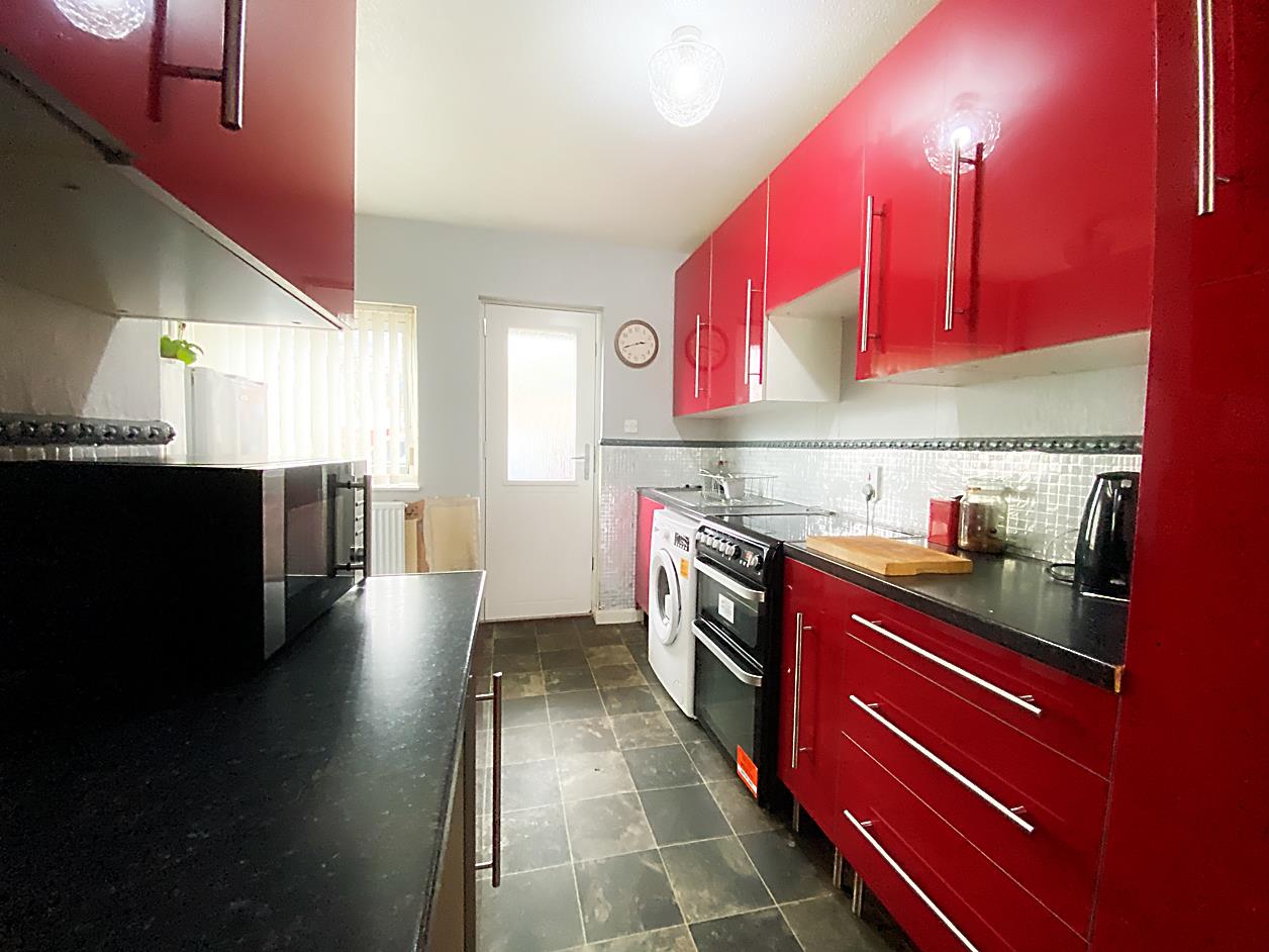Kitchen - 3.46 x 3.18 (11'4" x 10'5") - Double glazed door to rear garden, double glazed window, wall and floor units with work tops over, wood effect flooring, radiator.