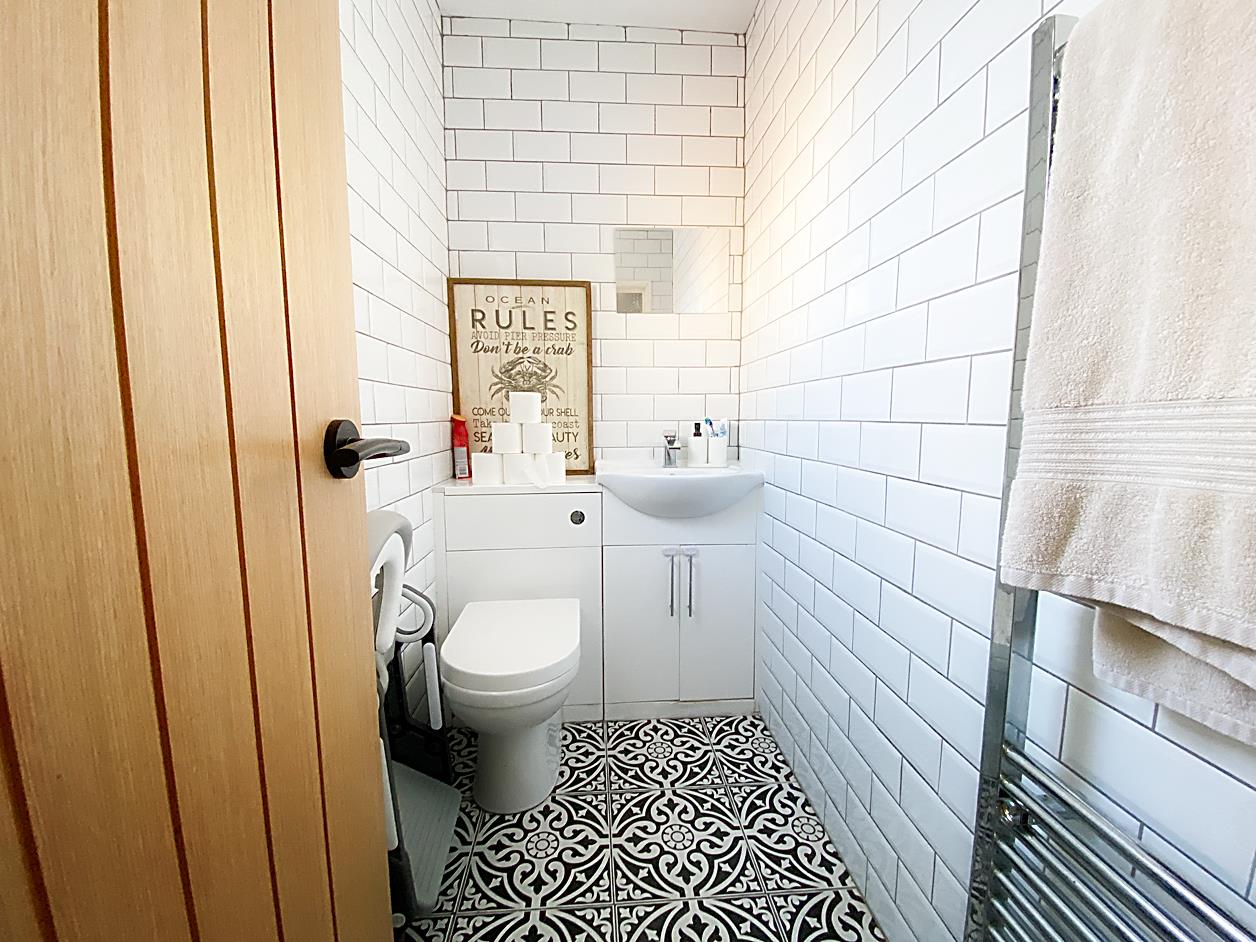 Cloaks/Wc - 2.02 x 1.07 (6'7" x 3'6") - WC and wash hand basin with fitted furniture surrounding, tikling to walls and floor, double glazed window, ladder style radiator.