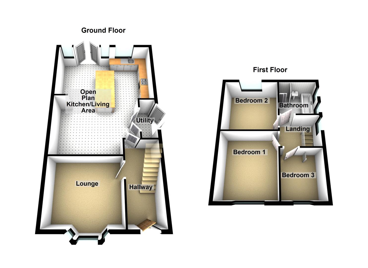 Utility Area - 3.06 x 0.84 (10'0" x 2'9") - Plumbed for washing machine, double glazed French doors leading out to the side.