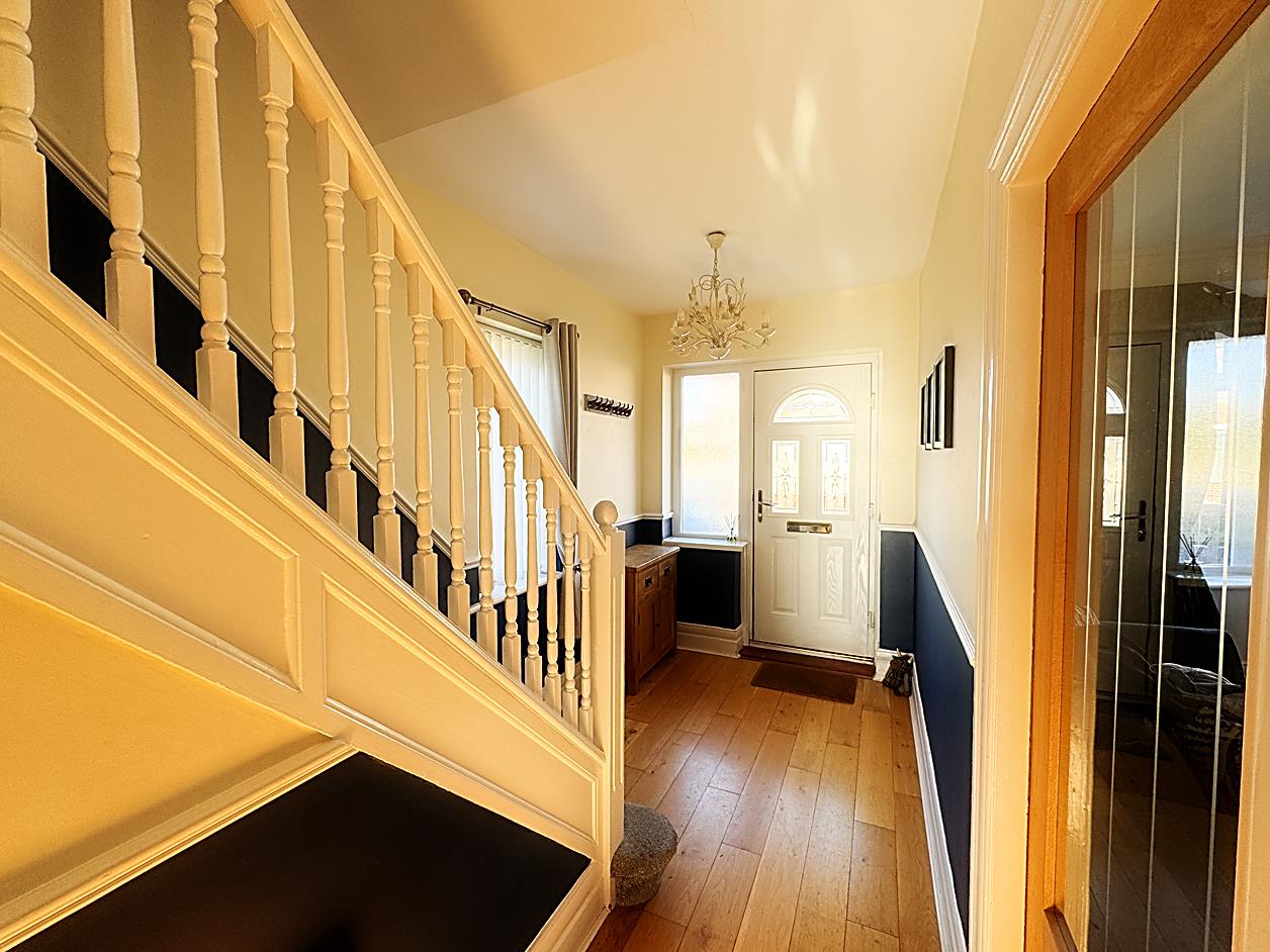 Hallway - 4.68 x 1.89 max (15'4" x 6'2" max ) - Radiator, double glazed window, stairs to first floor, access to lounge, and kitchen/diner.