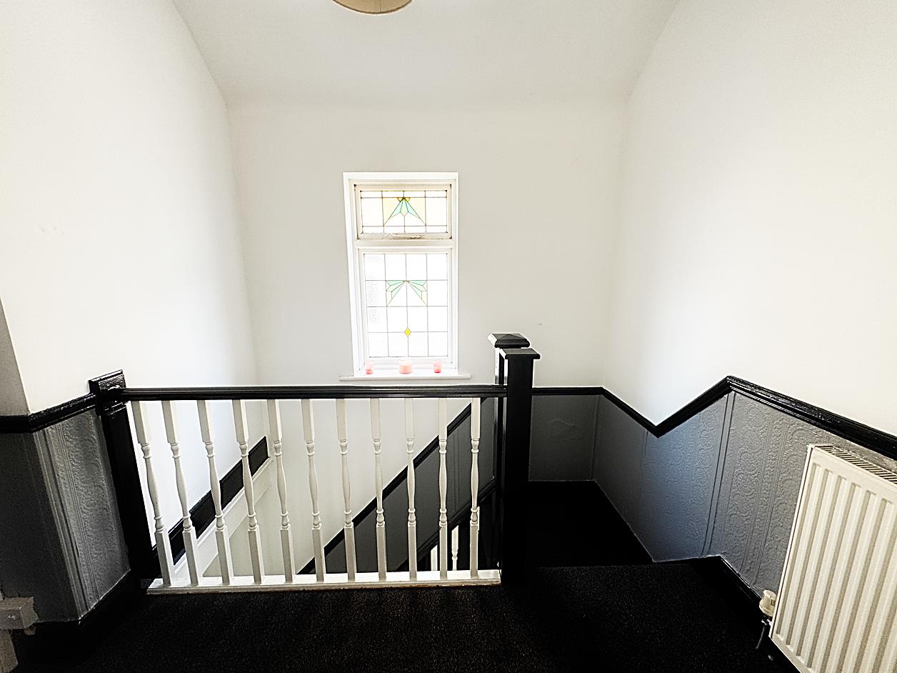 Landing - Single glazed leaded glass window, access to loft, radiator.