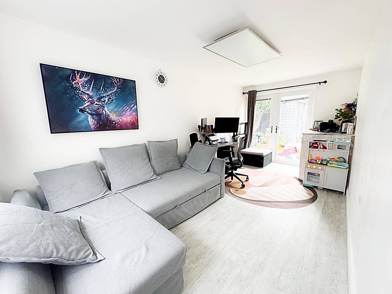 Playroom/Office - 5.17 x 2.74 (16'11" x 8'11" ) - Formerly garage, double glazed window to front elevation, radiator, laminate flooring and French doors opening up to rear garden.