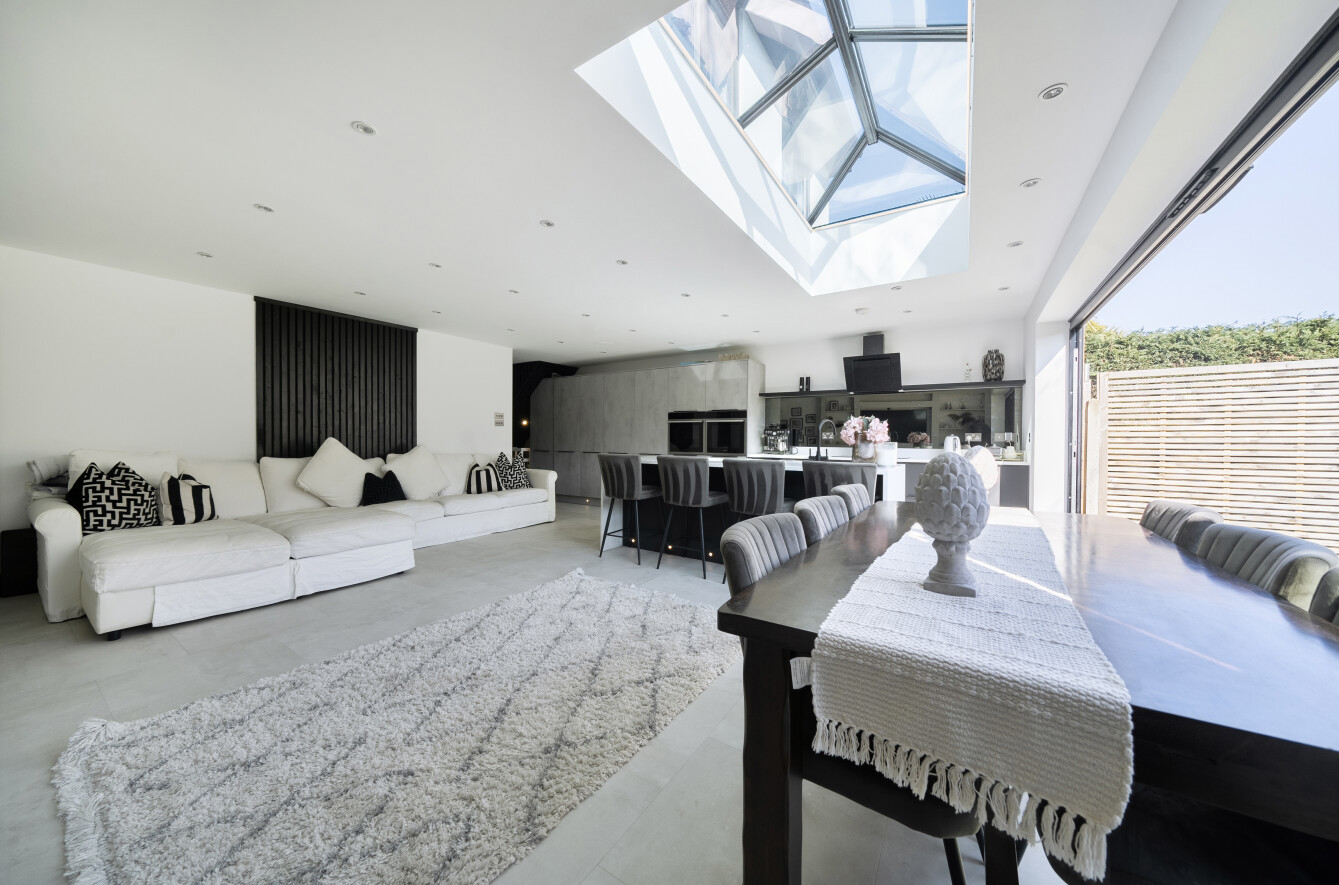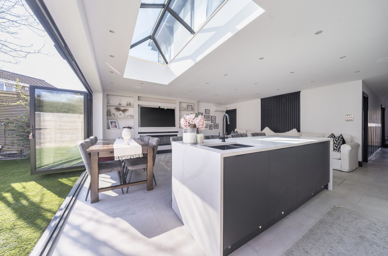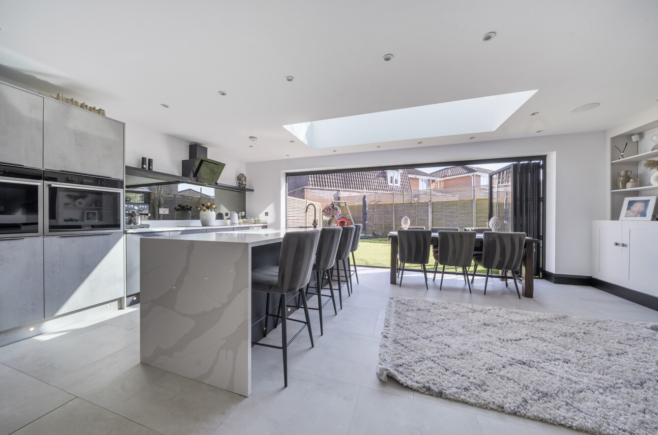 Guide price £750,000 to £800,000. Stylish, extended 3 bed link detached home with modern openplan living space. Low maintenance rear garden, off road parking and garage. Convenient for Darrick Wood schools.