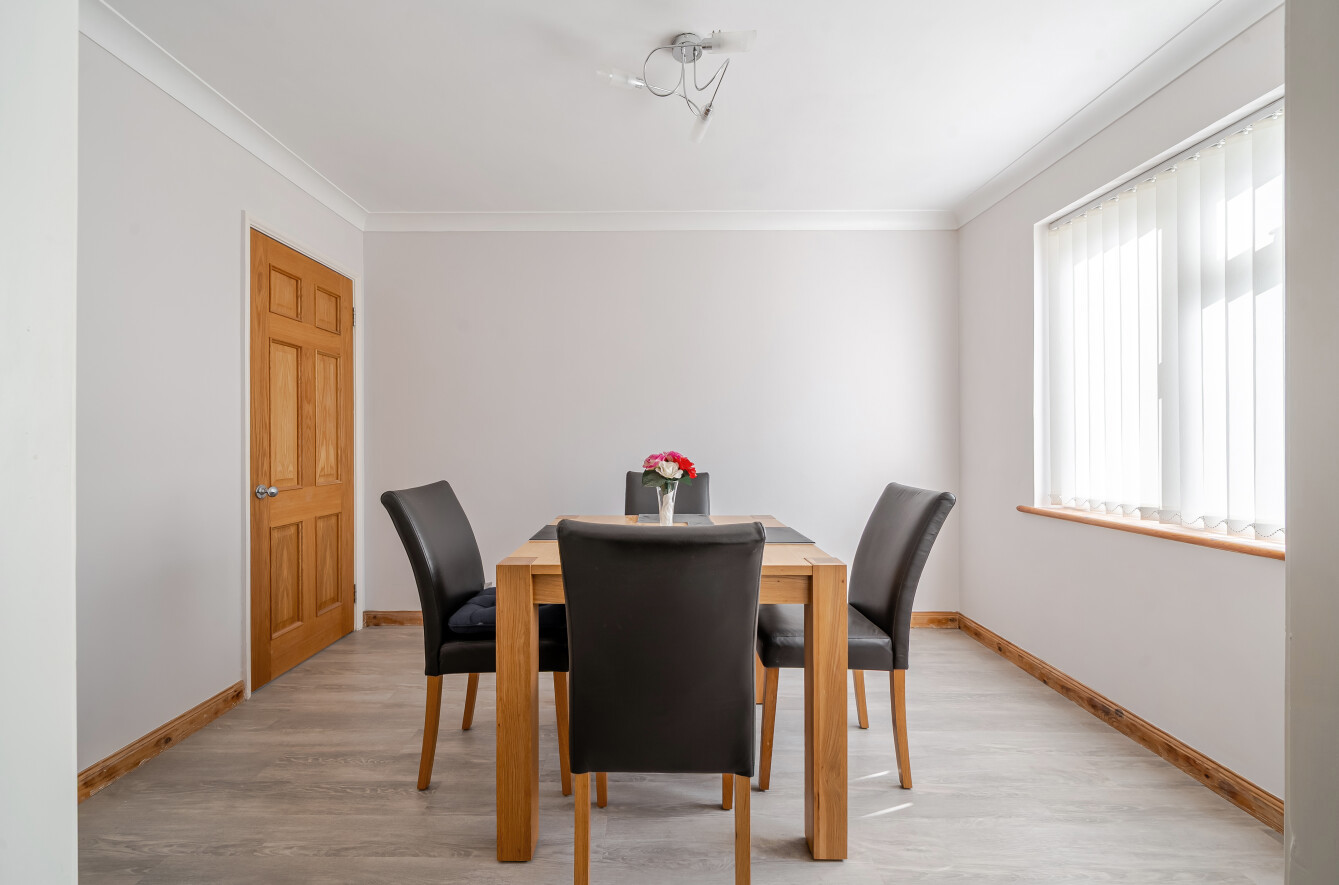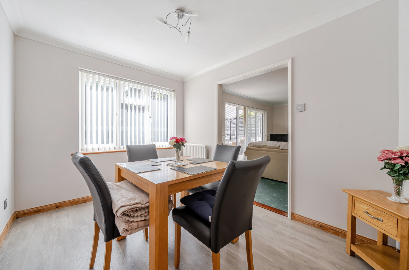 To the rear of the property is a large sitting room with patio doors leading out to the rear garden and an arch leading through to a separate dining area. The layout lends itself to sociable family life but could also be separated if required.