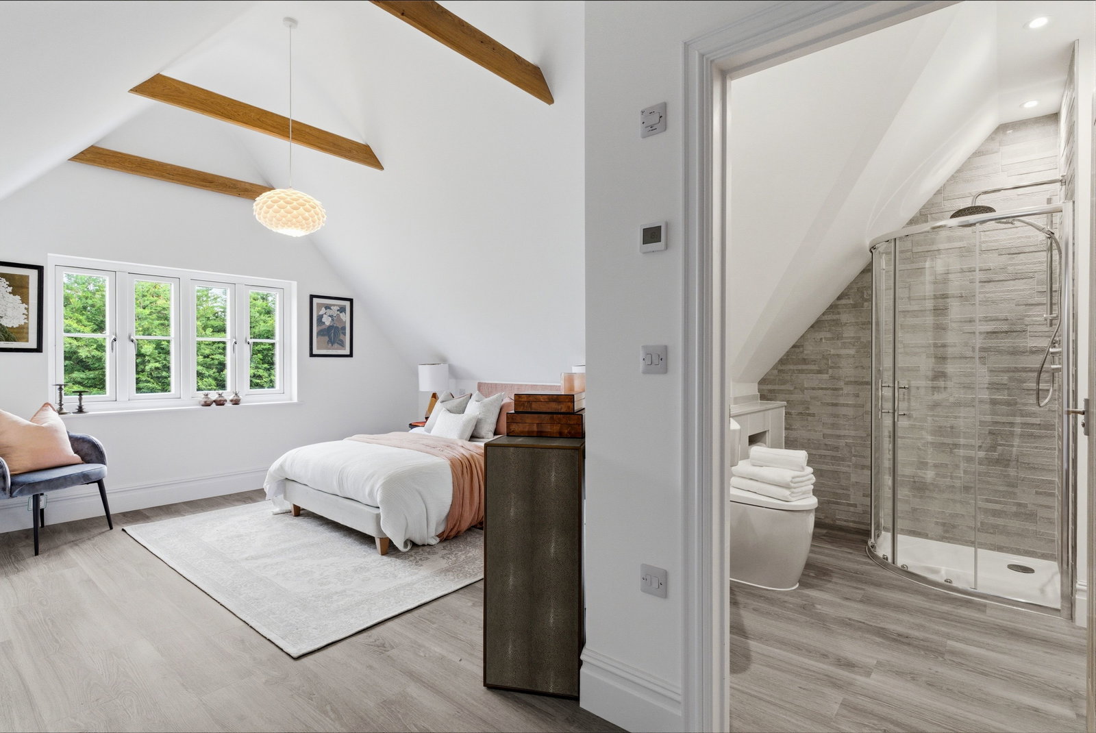 Manor Wood is located on the edge of Wimbish, a charming village set amidst the rolling north Essex countryside, just three miles south-east of the historic market town of Saffron Walden. With its meandering lanes, traditional cottages and surrounding farmland, the village enjoys an authentic rural character, while remaining well connected for modern life.