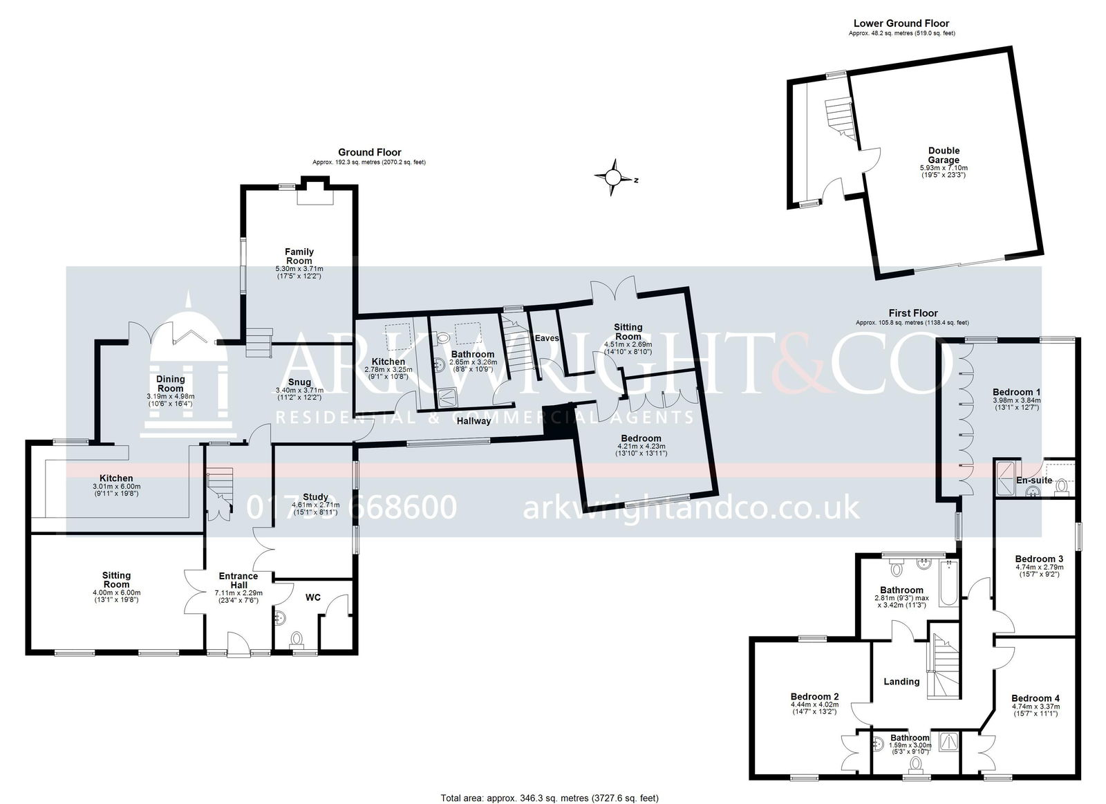 Three further bedrooms, all generously sized doubles, provide space for family and guests, served by a contemporary family bathroom and a separate shower room, both finished to a high standard.
