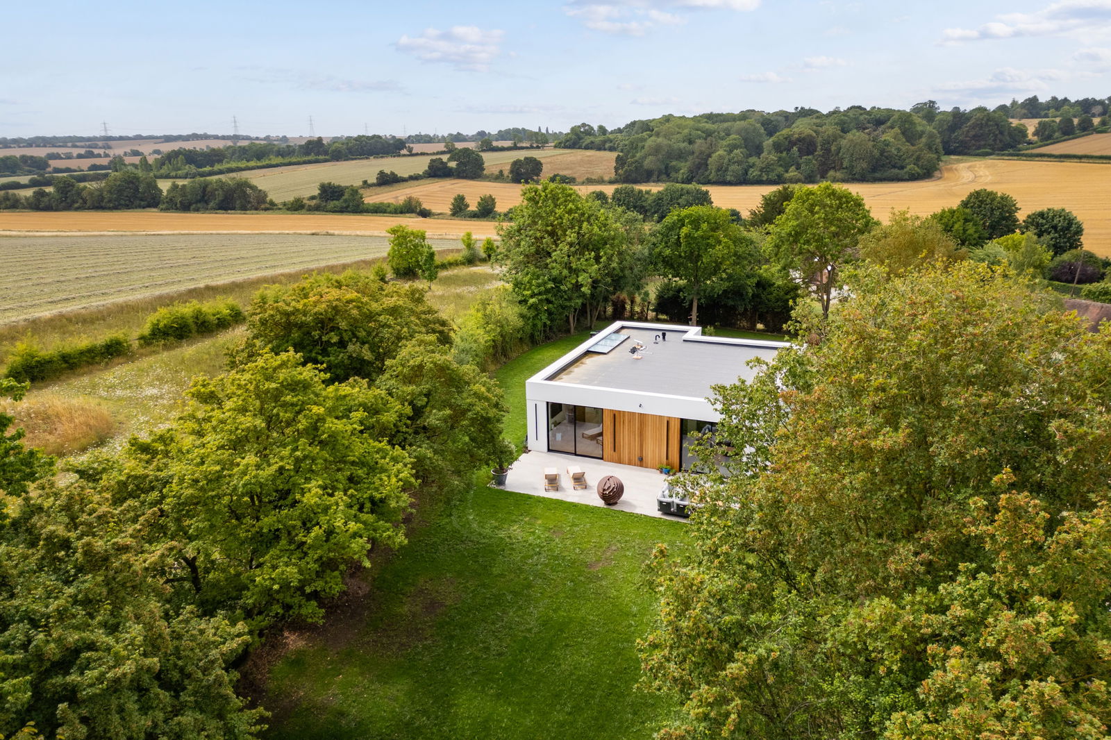 As you approach this exceptional property, the grandeur of the entrance hall immediately sets the tone. The striking design combines modern aesthetics with warm, natural elements, ensuring a welcoming first impression. The entrance seamlessly leads to the expansive open-plan sitting and dining room, a perfect space for entertaining and relaxing. The large windows provide an abundance of natural light, offering stunning views to the surrounding countryside.