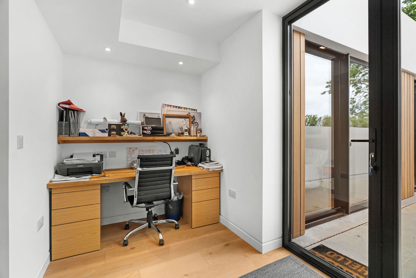 Descending to the lower ground floor, the level of luxury continues with a private suite designed for comfort and relaxation. The principal bedroom is a true sanctuary, with its own ensuite and walk-in wardrobe. Each of the four additional bedrooms also boasts its own ensuite, ensuring that all members of the family or guests have their own private, luxurious space. Whether used for children, family members, or guests, these rooms provide both privacy and convenience. For those who work from home, the office offers a dedicated, quiet space to focus and be productive. The gym/games room/ cinema room provides ample space for fitness or entertainment, giving you a range of possibilities for relaxation or recreation. Storage cupboards and a convenient hallway provide additional functional spaces to keep everything organised.