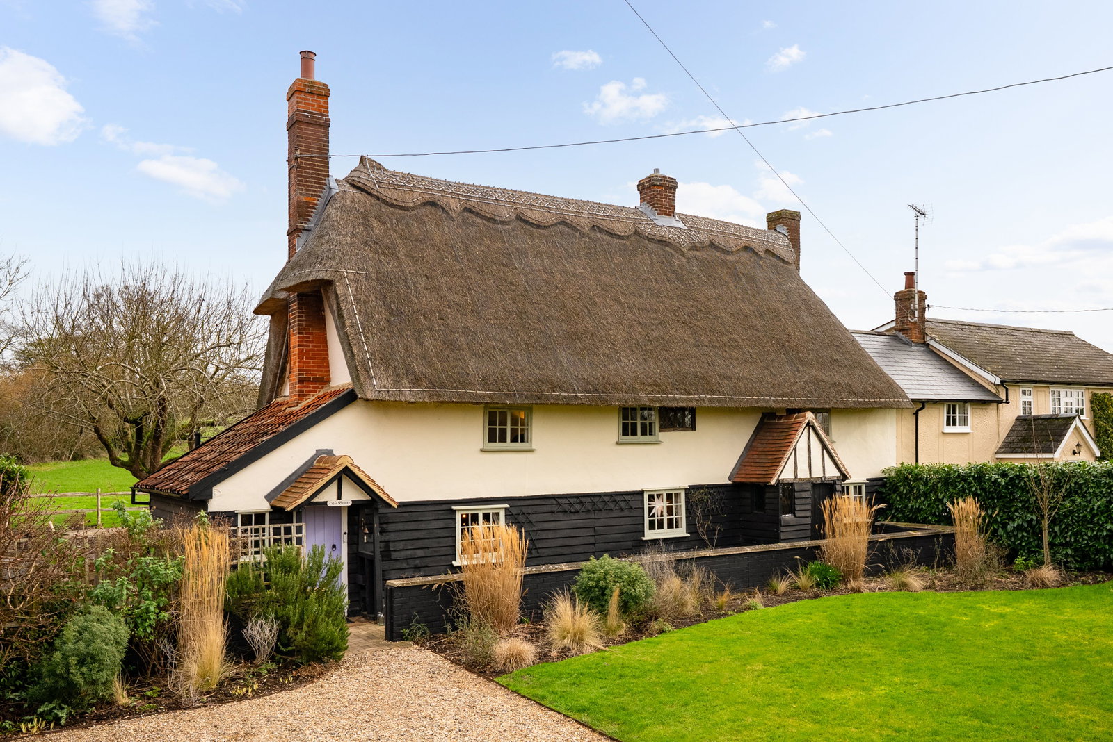 Set within one of the most admired pockets of the village, on a quiet no through road, The Druce is a charming three bedroom, Grade II listed thatched cottage of immense character and historic significance, believed in part to date back over 600 years. Occupying a delightful position within the heart of Clavering, the house enjoys landscaped gardens and open countryside beyond.
