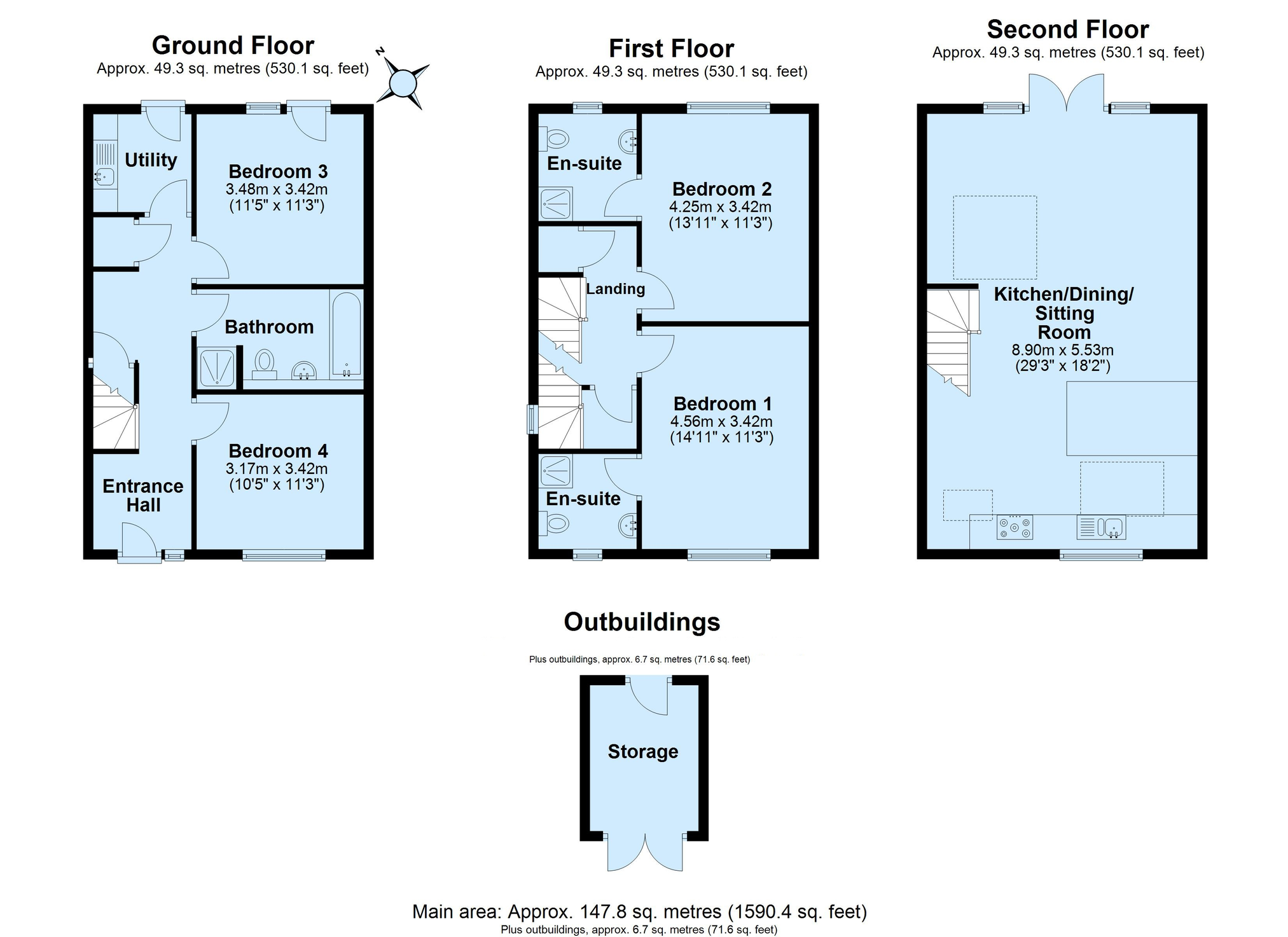 Stairs rise to the first floor where there are two further excellent-sized bedrooms, each benefitting from its own en-suite shower room, offering comfort and privacy for family and guests alike.