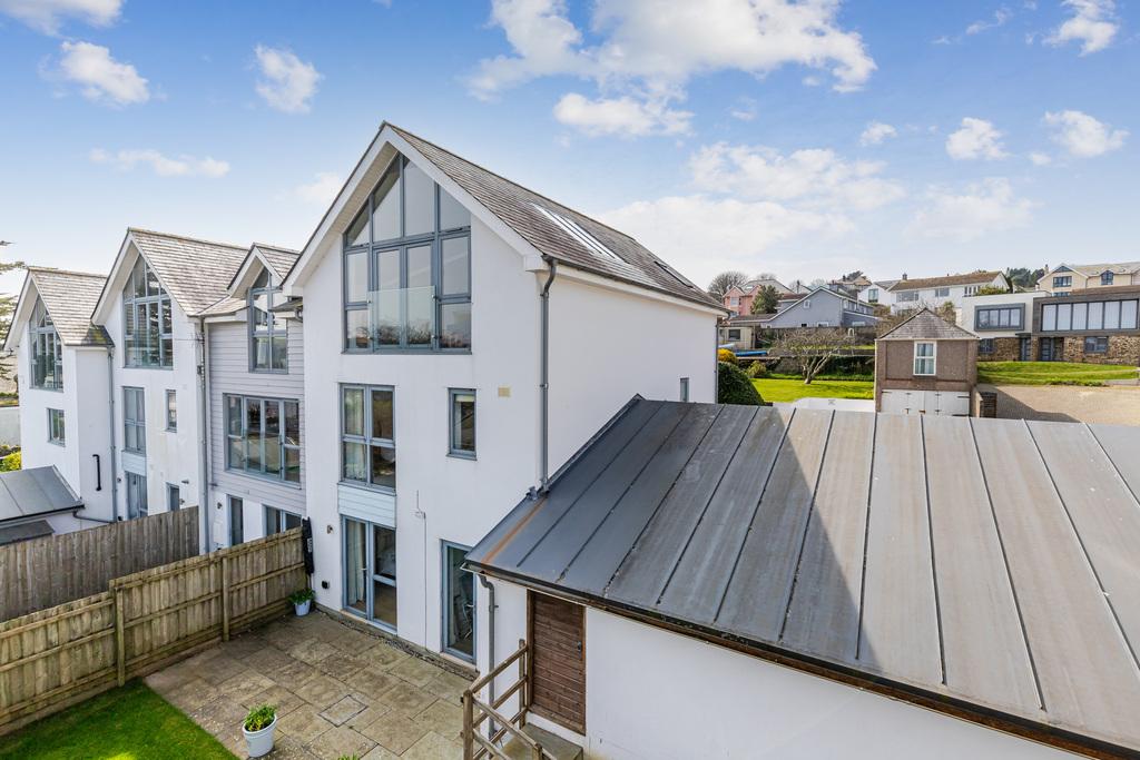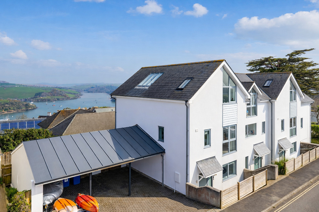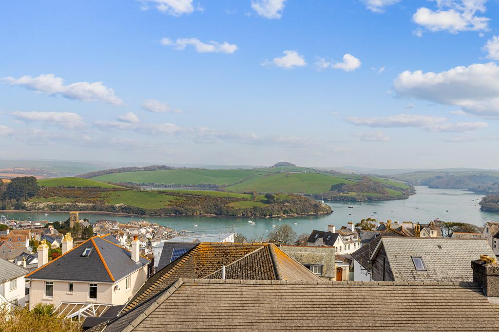 A stunning 4 bedroom end-of-terrace house enjoying incredible views over the Salcombe Estuary and countryside beyond, allocated parking, a store room, and garden.