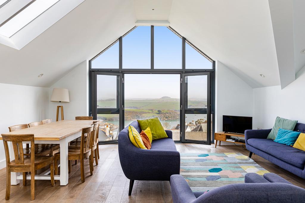 A stunning contemporary four-bedroom home, Lundy offers beautifully designed accommodation arranged over three spacious floors. The property effortlessly combines comfort and style, centred around a spectacular open-plan living, dining and kitchen area, perfect for both everyday living and entertaining. This exceptional space enjoys elevated, panoramic views across the Salcombe Estuary and the surrounding countryside, forming the true heart and centrepiece of this remarkable home.