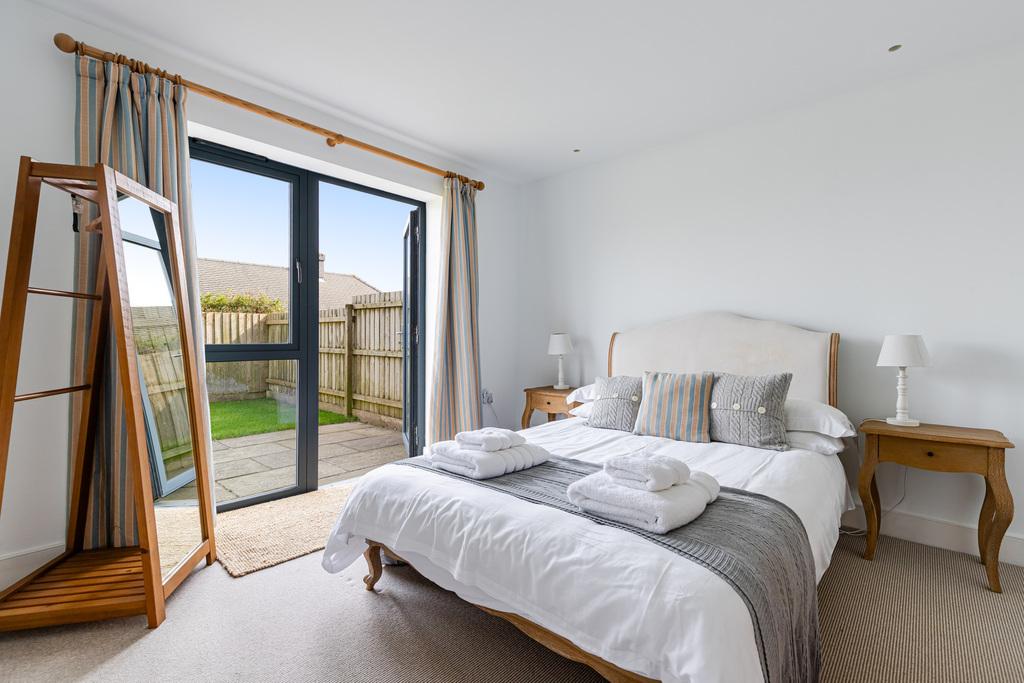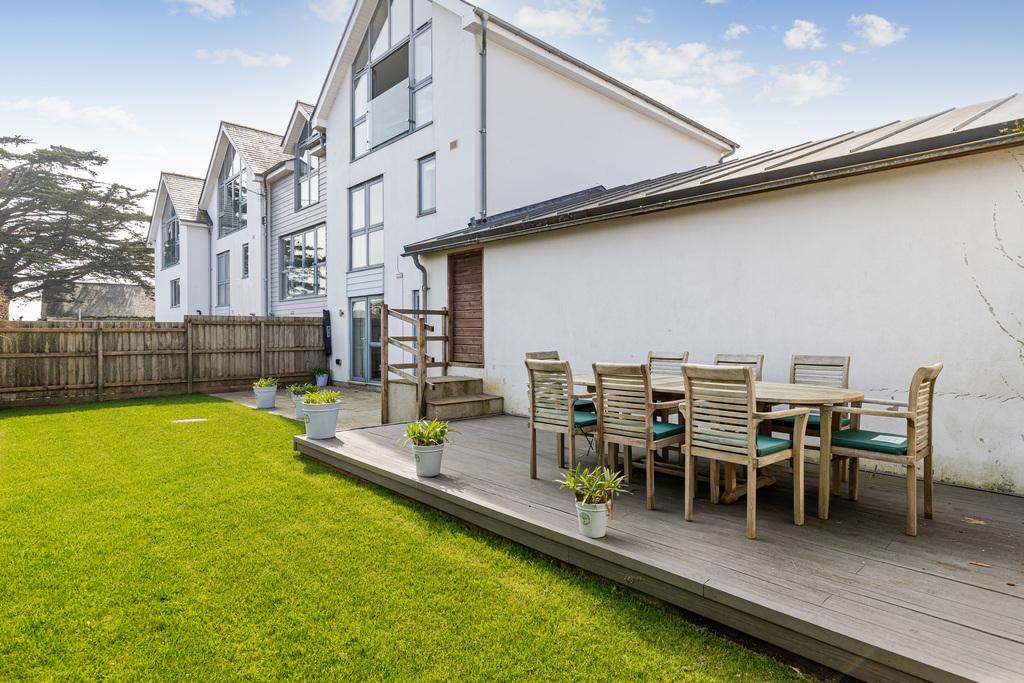 Externally, the property benefits from an allocated covered parking area with space for two vehicles, leading to a useful store room. With direct access to the rear garden and utility room, this setup is ideal for returning from coastal walks with sandy shoes or muddy boots. The garden itself is of a good size, level, and perfectly suited for outdoor enjoyment.