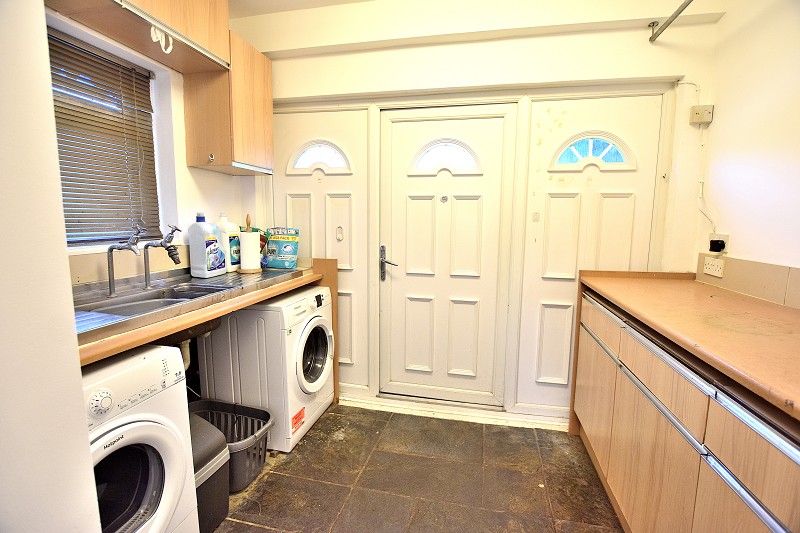 UTILITY ROOM: Slate floor. Cupboard for storage and housing boiler (floor standing). W/C. Further storage cupboard. Fitted wall and base unit with sink. Plumbing for washing machine. Timber window to side aspect. UPVC double glazed door to front aspect.